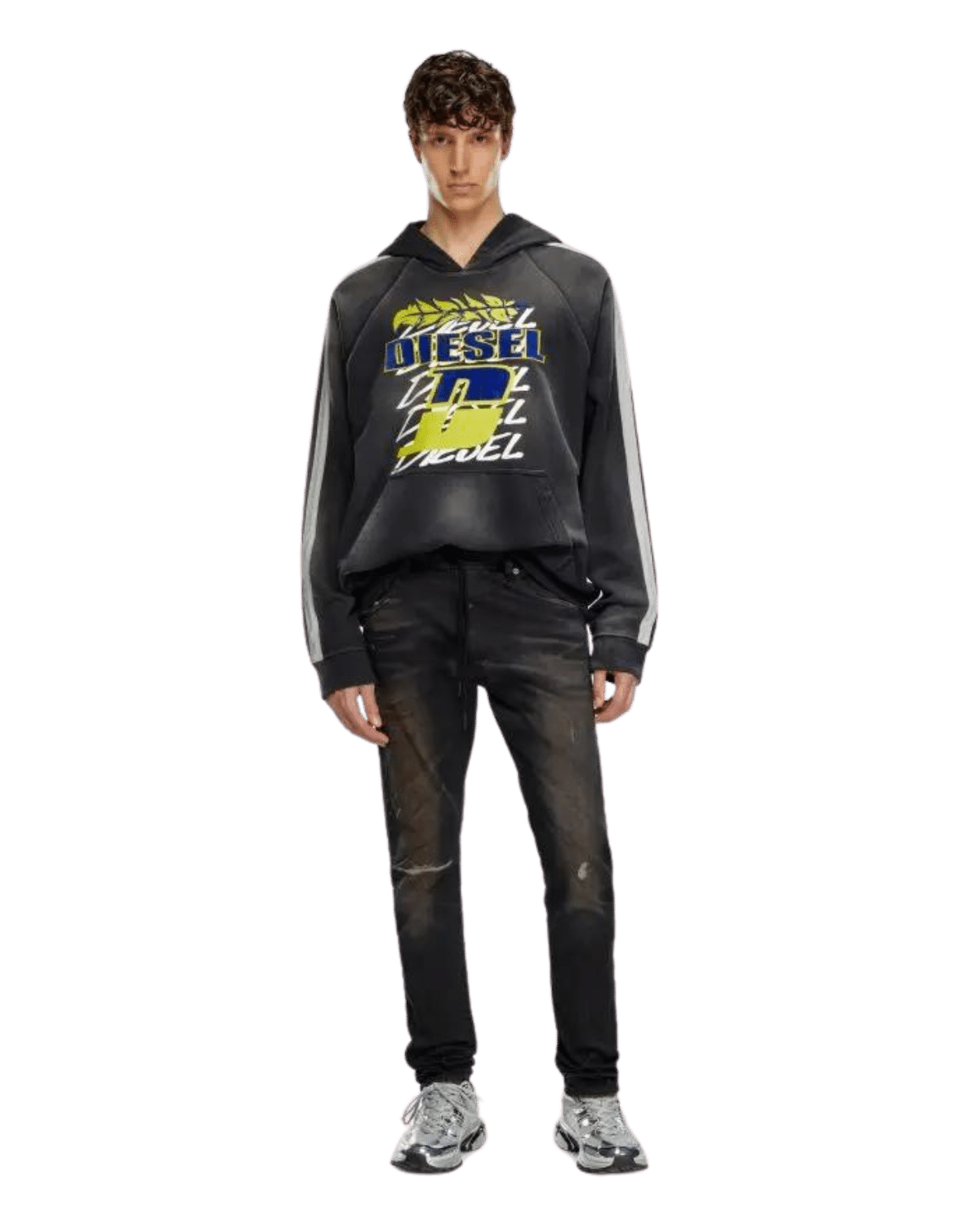 שטיפת הג’ינס מעניקה מראה משומש בולט, ומועשרת בנגיעות צבע.