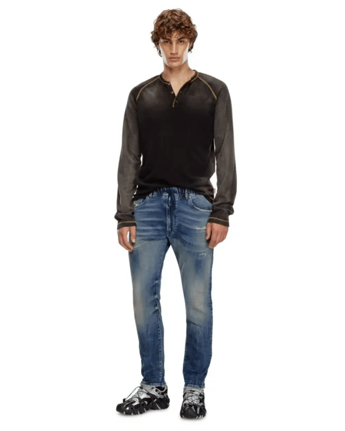 שטיפה כחולה בינונית זו מתאפיינת במראה DNA הרוס, עם שחיקות, שפשופים ואפקטי לכלוך המגדירים סגנון מרדני אך מעודן.
