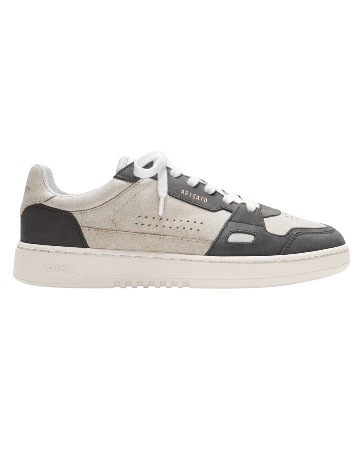 נעל סניקרס לגברים בגווני שחור ובז’ מלוכלך, המשלבת עיצוב עכשווי עם טוויסט מחוספס, בהשראת הרחוב האורבני.