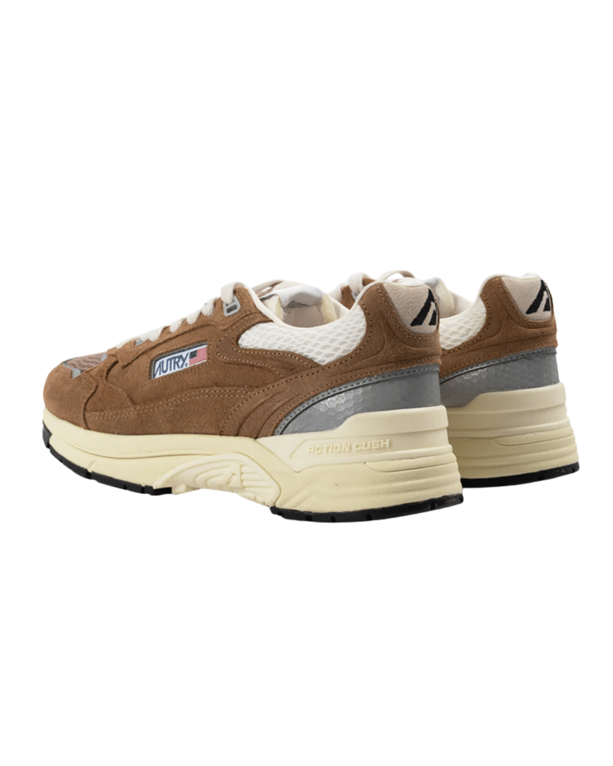 נעלי סניקרס מודרניות לגברים בעיצוב רטרו-עכשווי בגוון אגוז (Cigar) עם פרטי כסף-מטאלי (Silver).