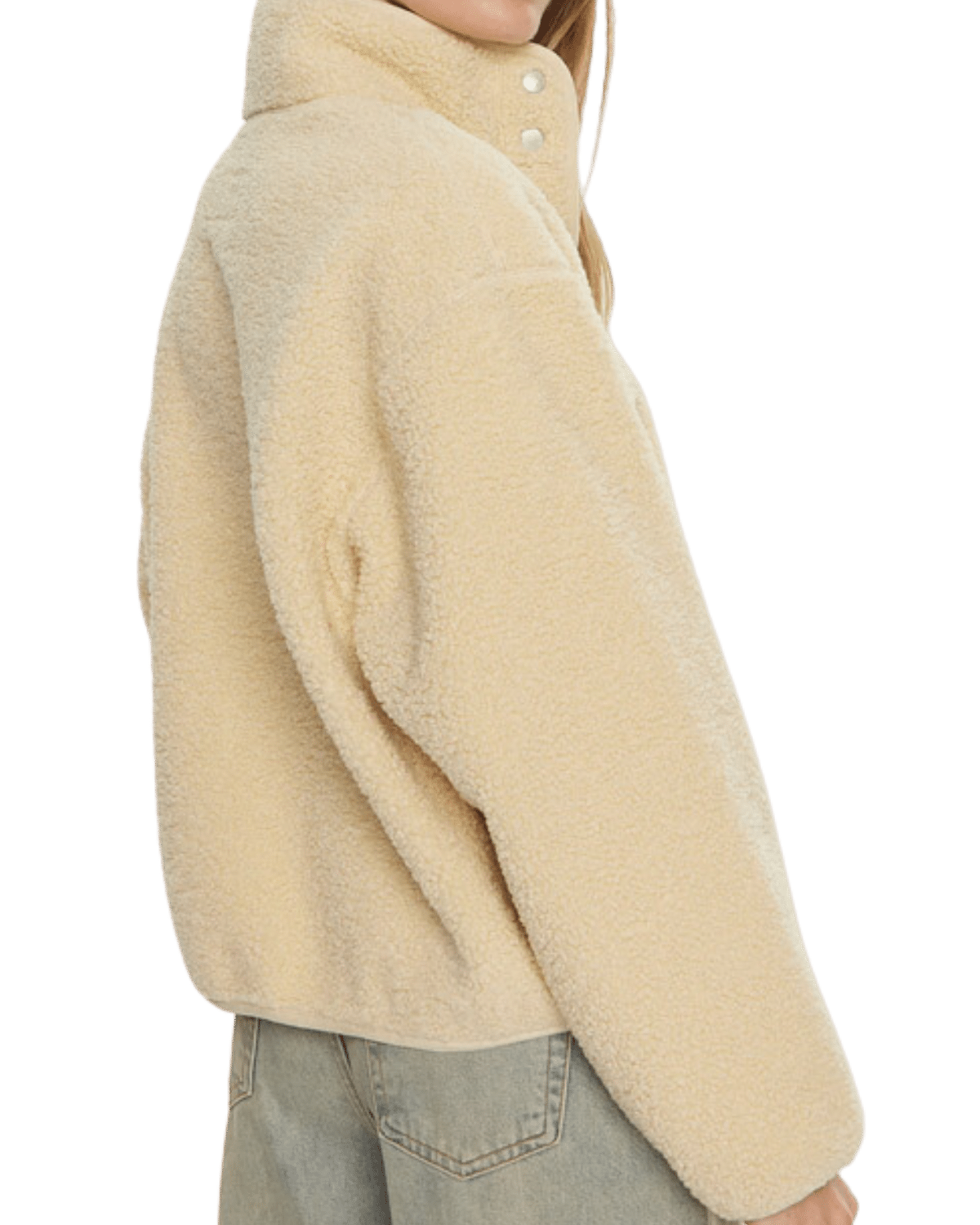 בעיצוב overshirt עם מרקם sherpa fleece רך וחמים שמעניק תחושת נוחות מושלמת בעונות הקרירות.