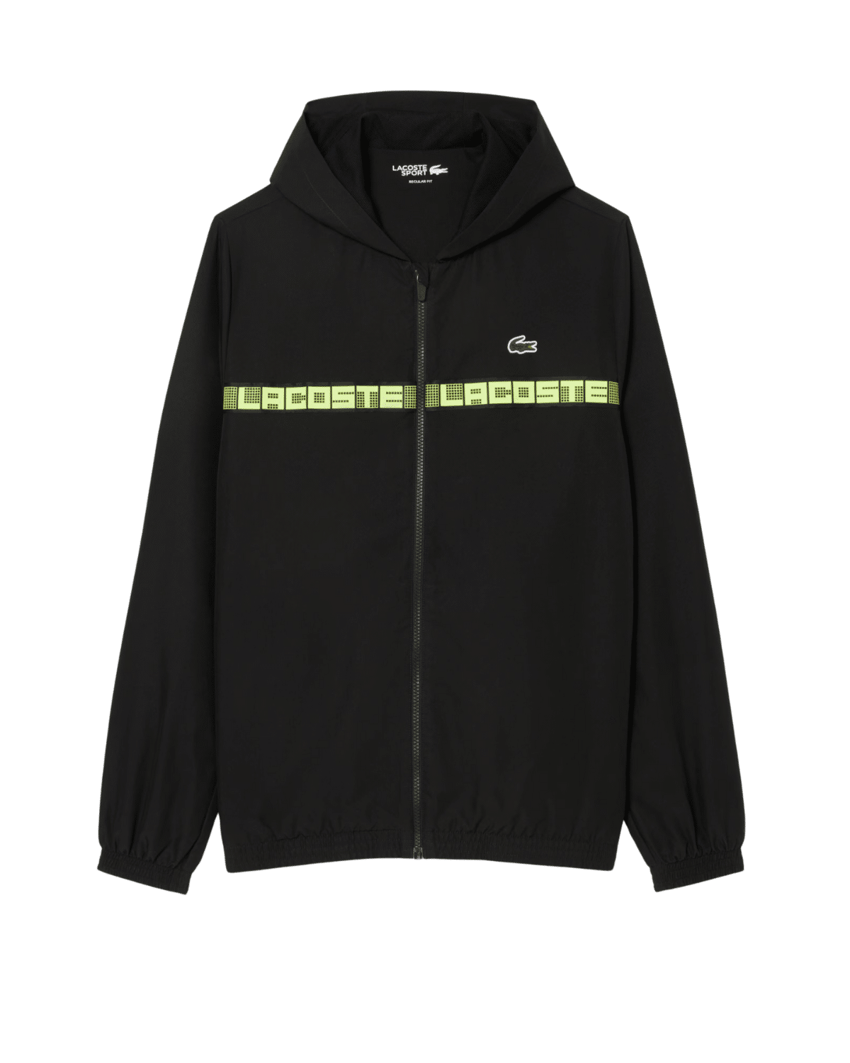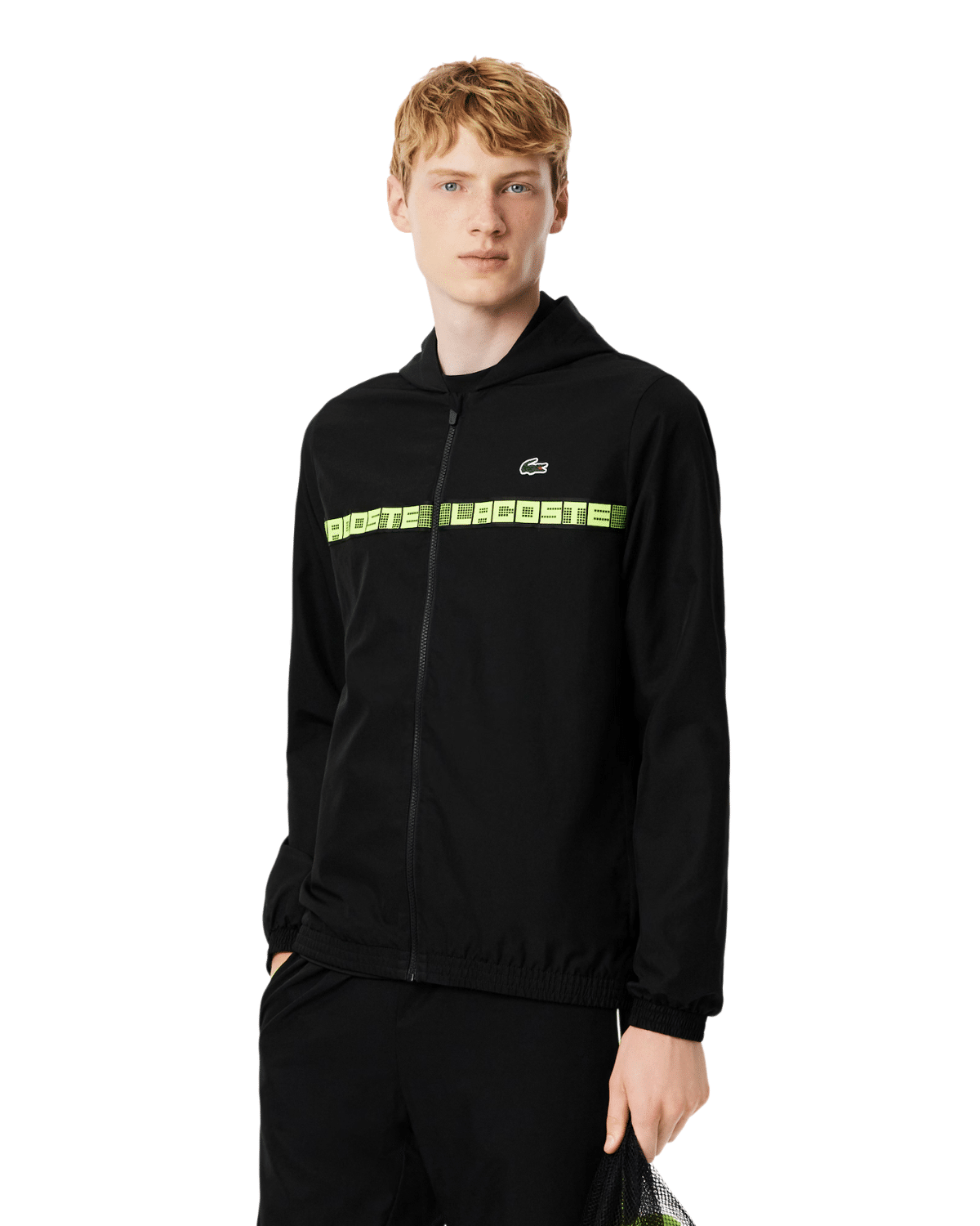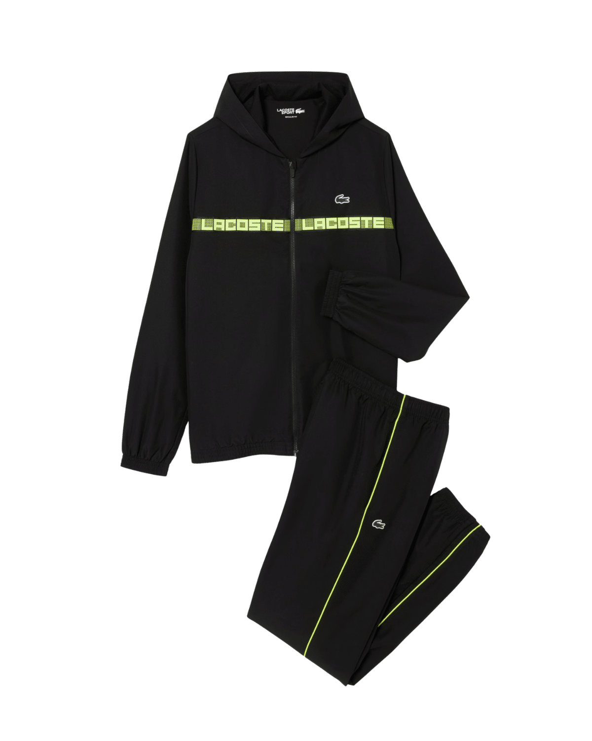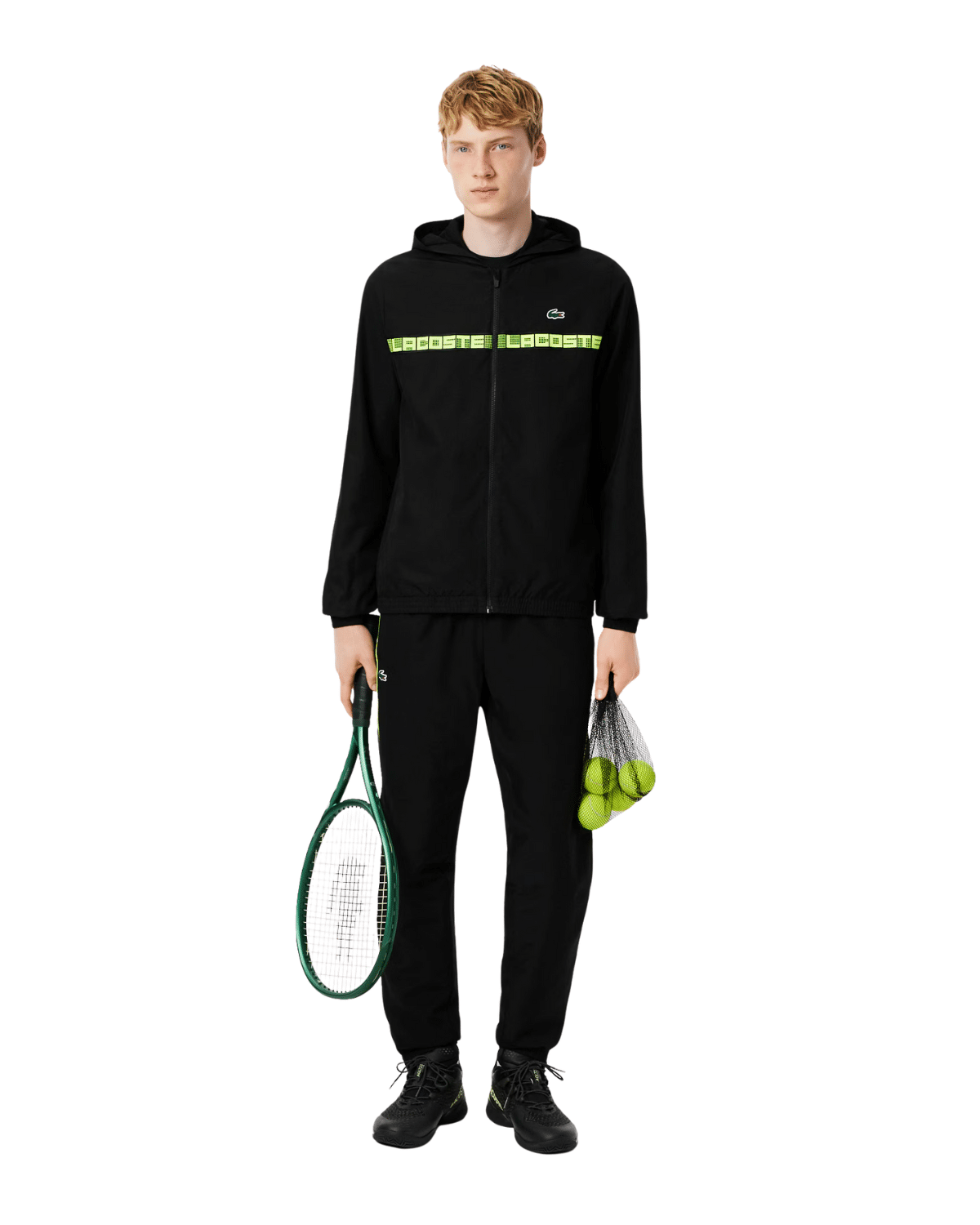 סט טרנינג טניס איכותי בעיצוב ספורט־אלגנט המשלב קווים נקיים ופסי לוגו אופייניים של Lacoste.