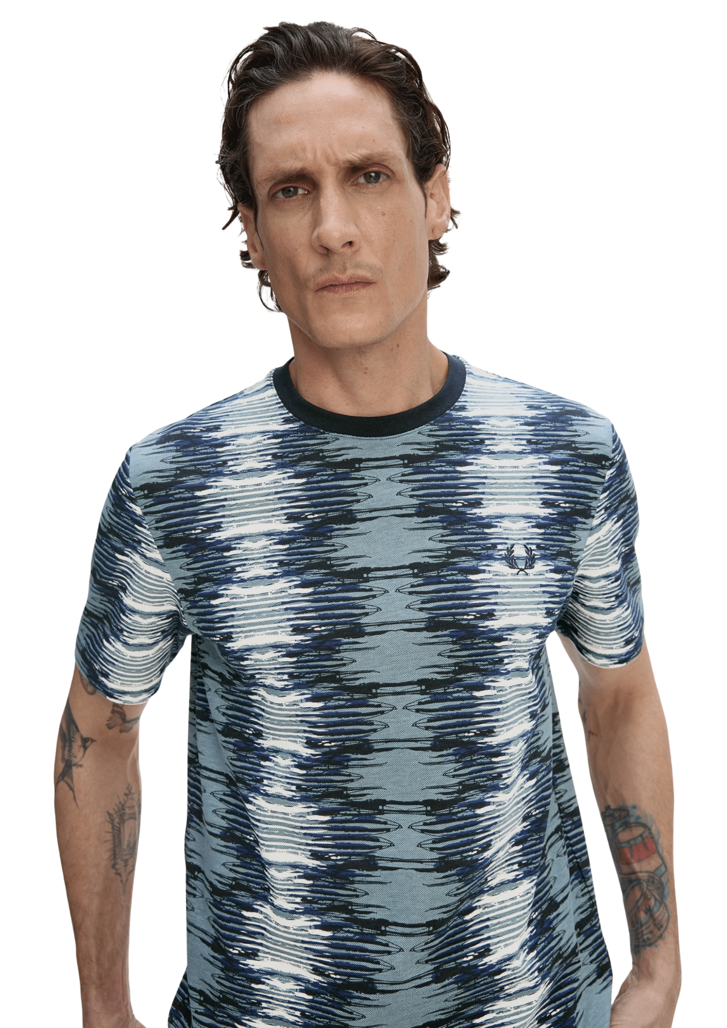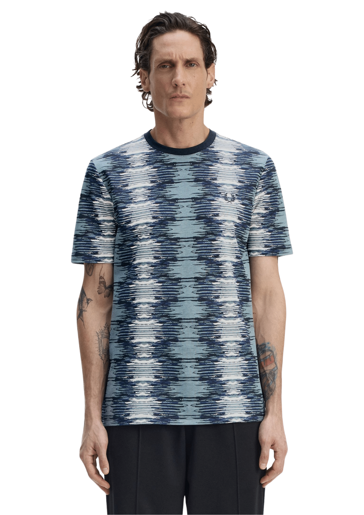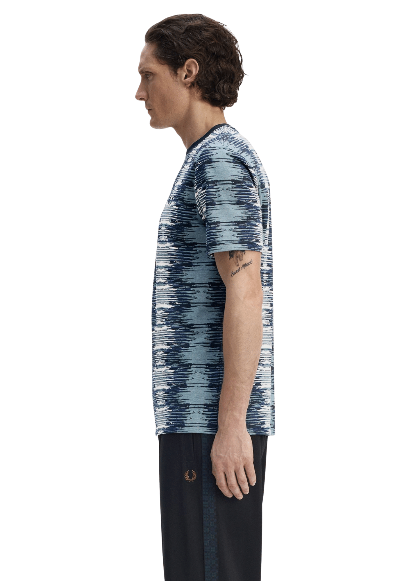 חולצת טי-שירט קצרה לגברים מבית Fred Perry בדגם Soundwave Glitch, עם הדפס גרפי ייחודי בהשראת גלי קול.