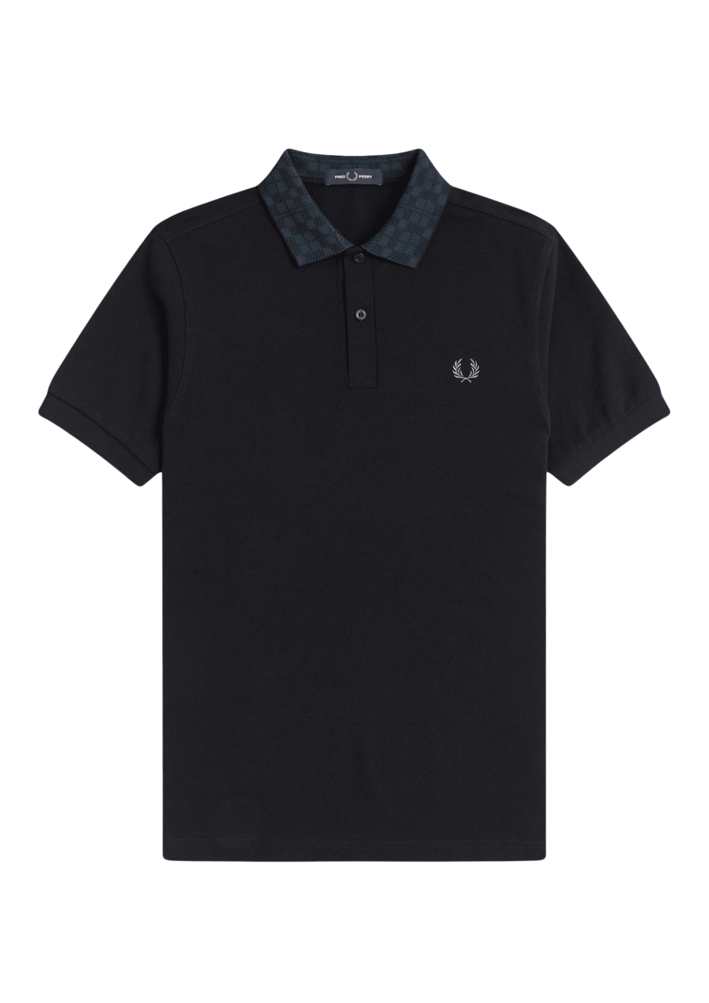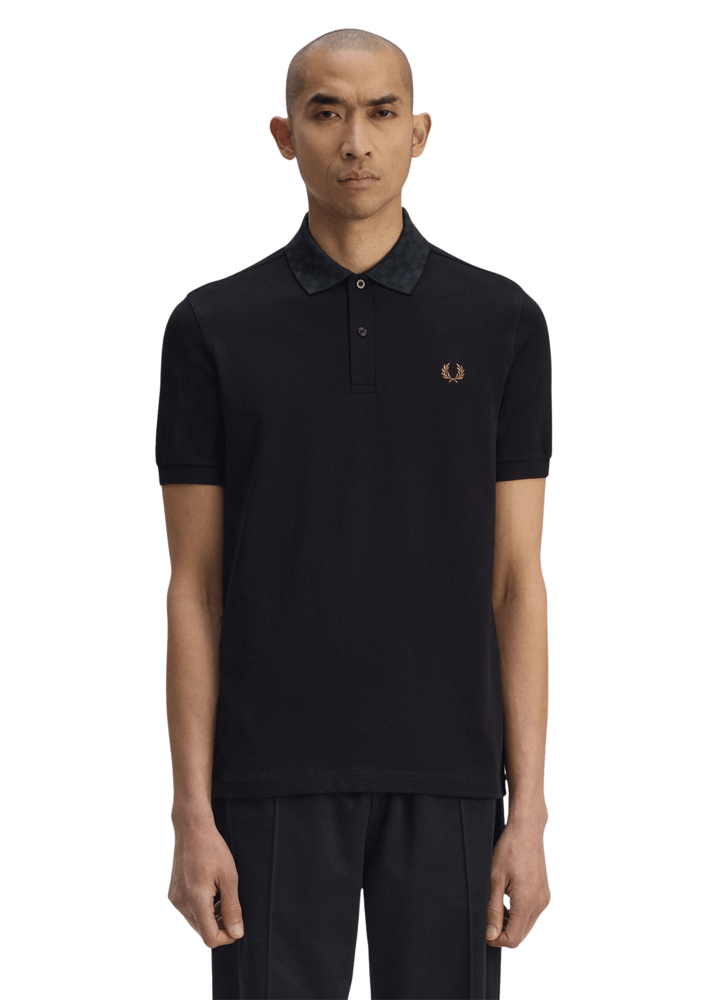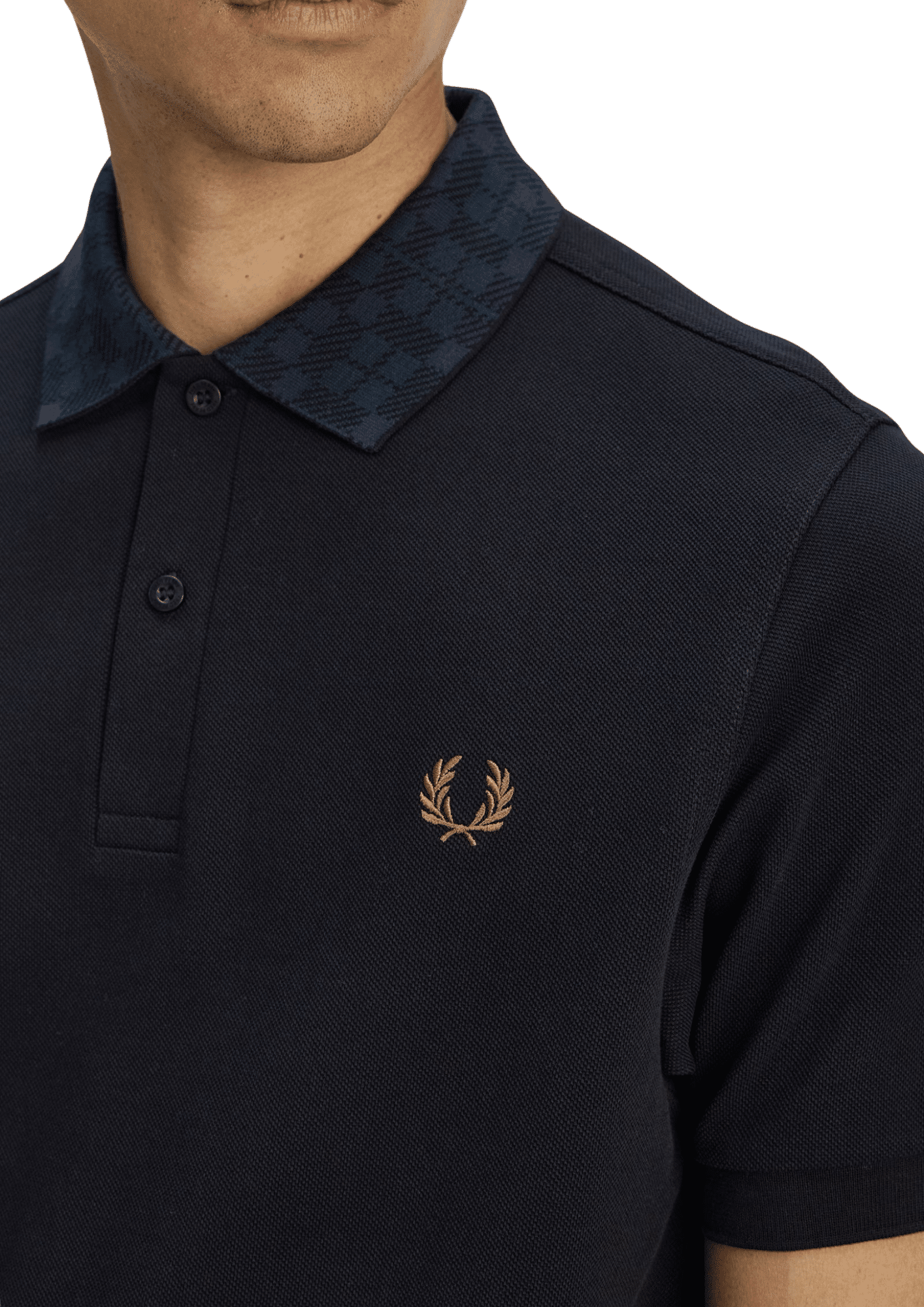 חולצת פולו לגברים מבית Fred Perry בדגם Black Watch Tartan Collar Polo עם פטנט צווארון בד טארטן קלאסי.