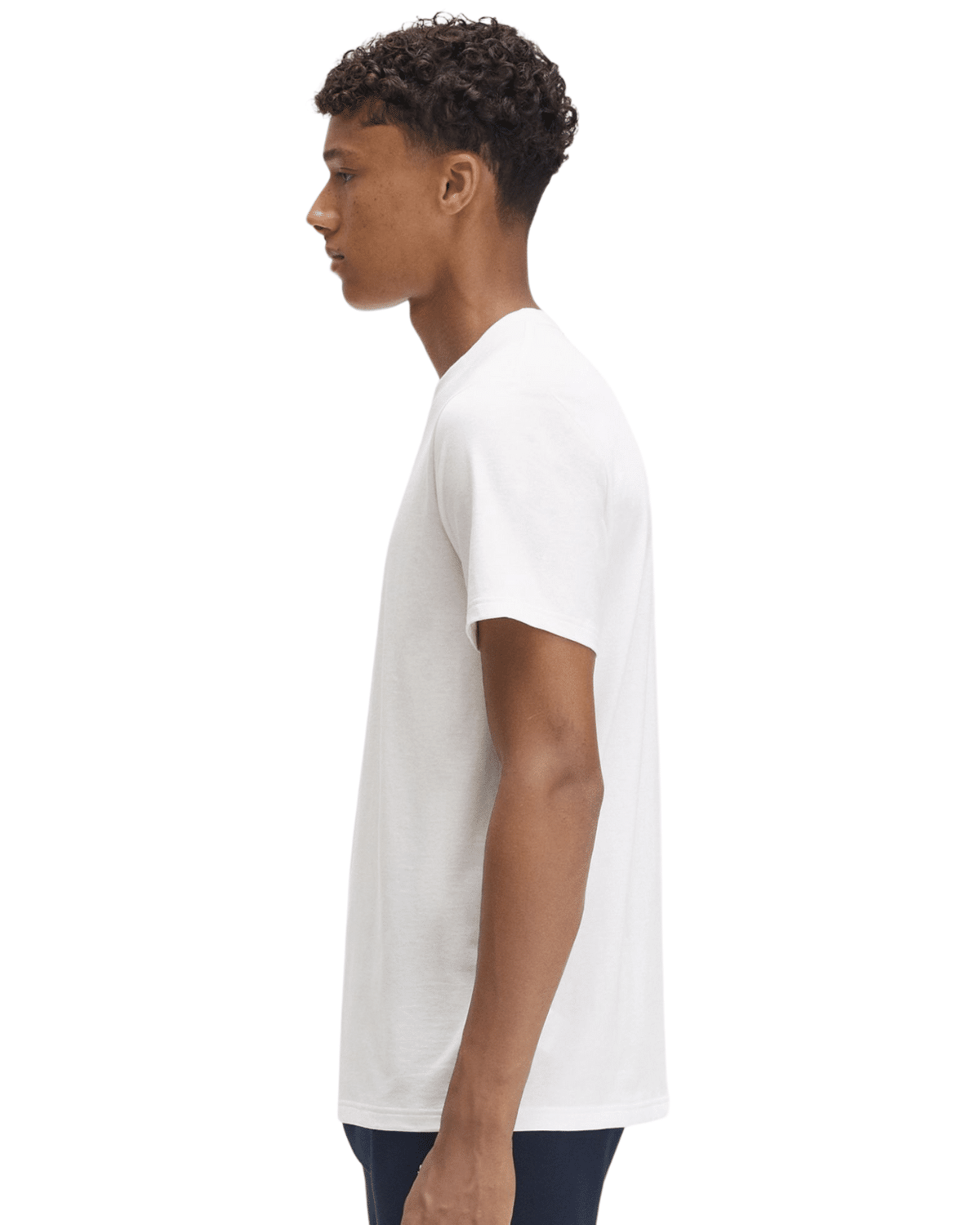 טי-שירט גברים לבנה, קלאסית ועל-זמנית, עם נוכחות נקייה ואלגנטית – פריט בסיס שהוא הרבה מעבר לסטנדרט.
