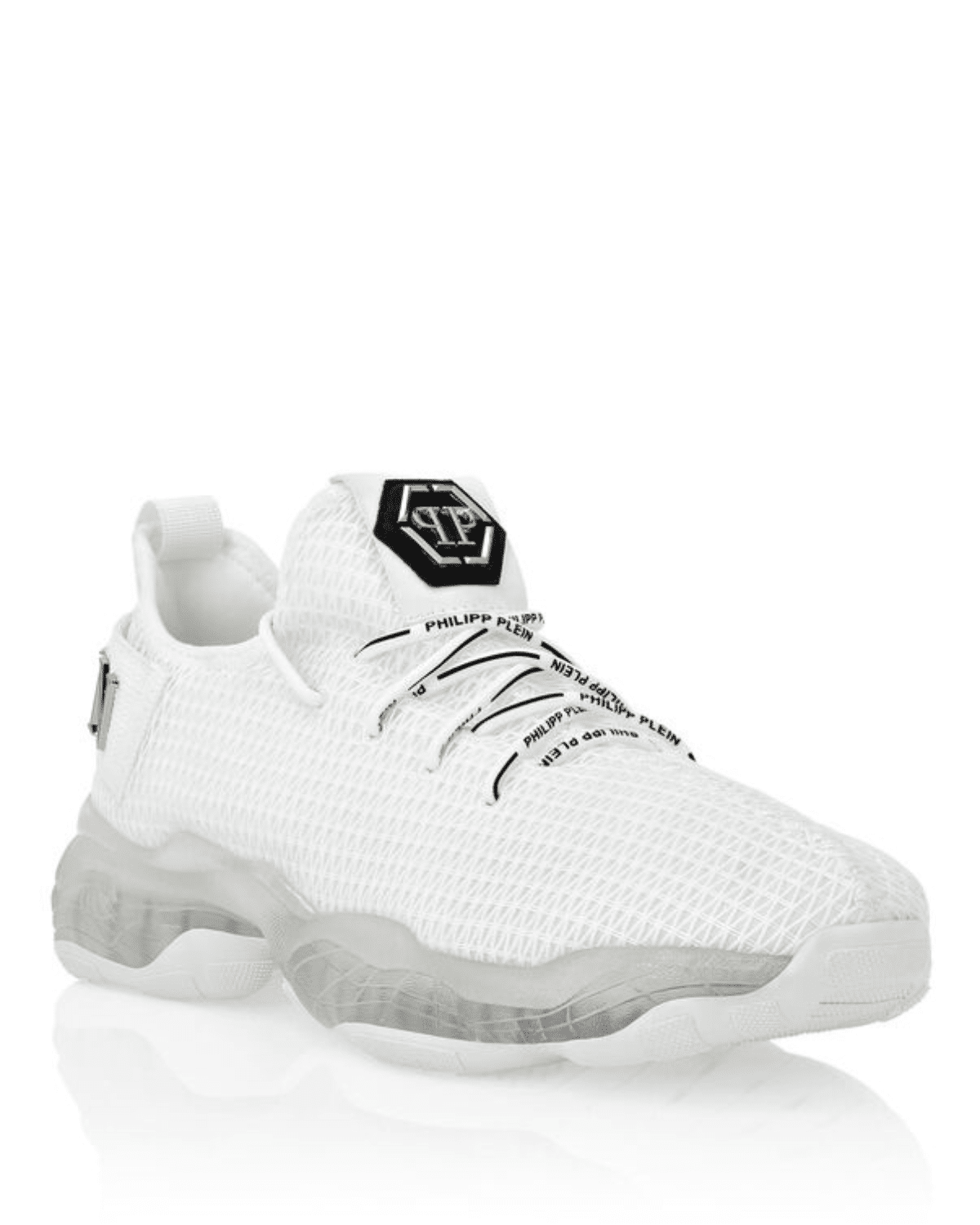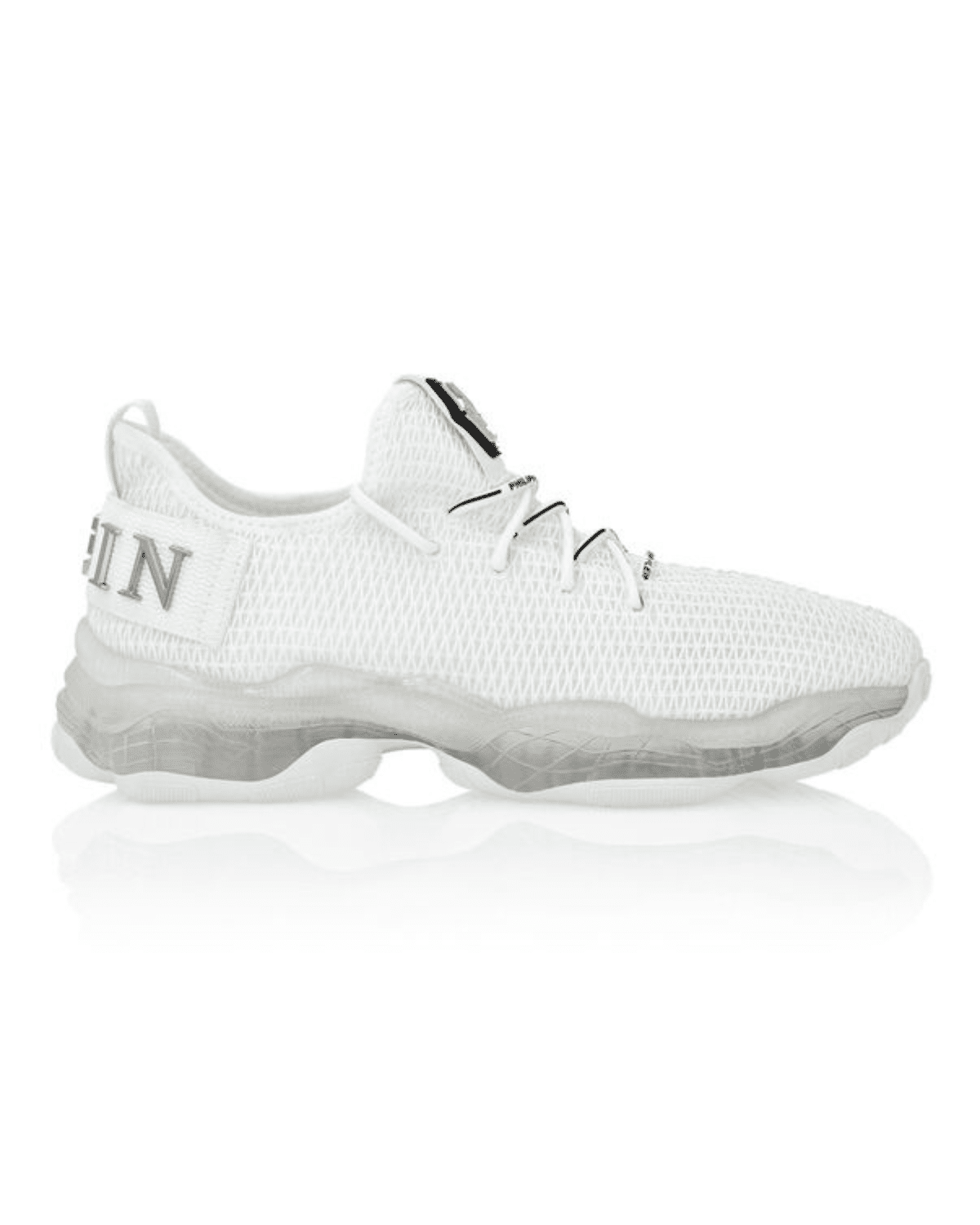 סניקרס לבנה בעיצוב יוקרתי לגברים, המשלבת קו מודרני ונקי עם נגיעות גרפיות ואסתטיקה עוצמתית.