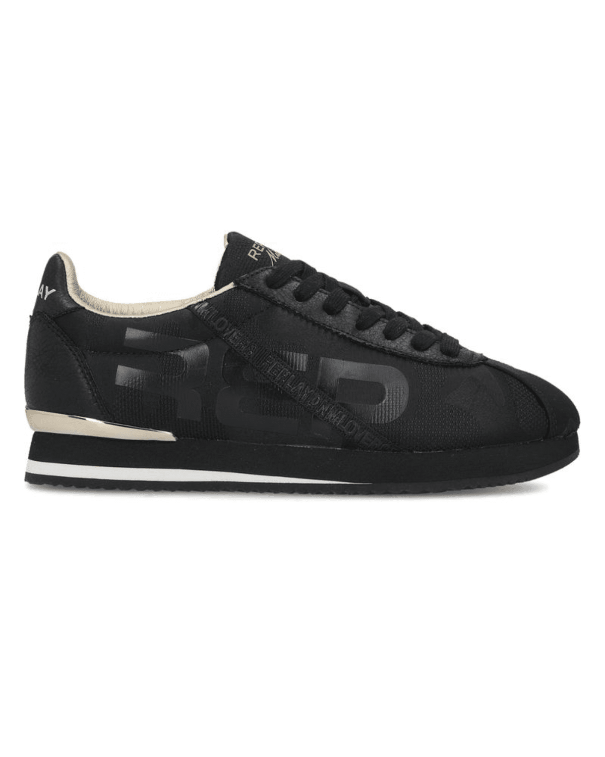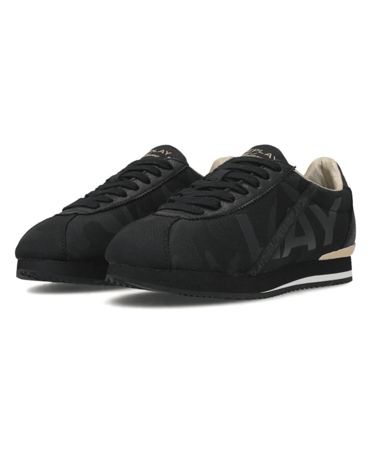 לוגו REPLAY מודפס בלבן על הצד החיצוני של הנעל ומעניק ניגודיות מודרנית למראה השחור הקלאסי.