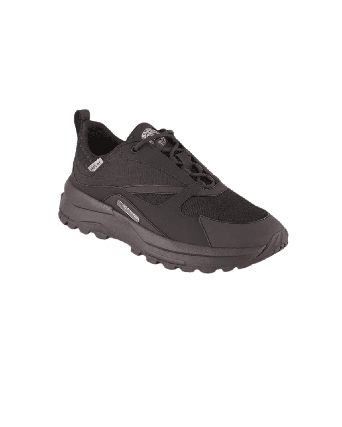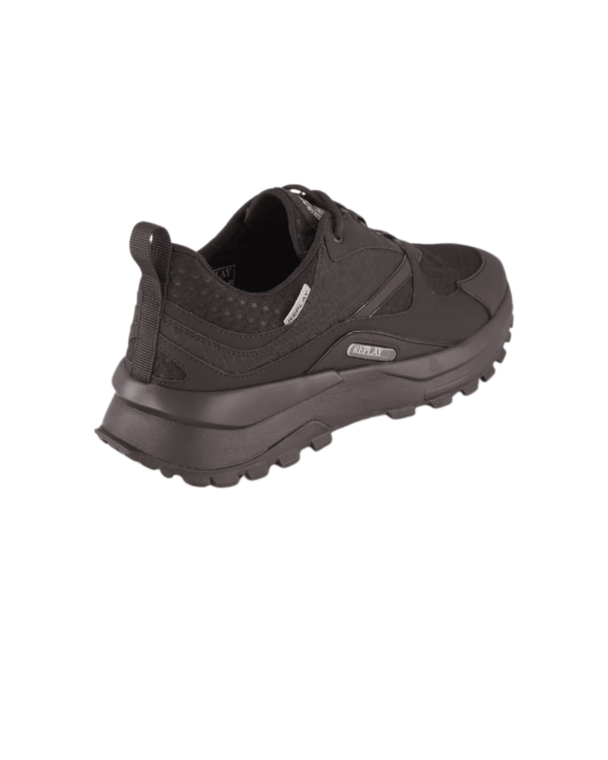 הקווים מדויקים ונקיים, כולל תפרים עדינים ולוגו Replay רקום בדיסקרטיות על הלשונית או הצד החיצוני.