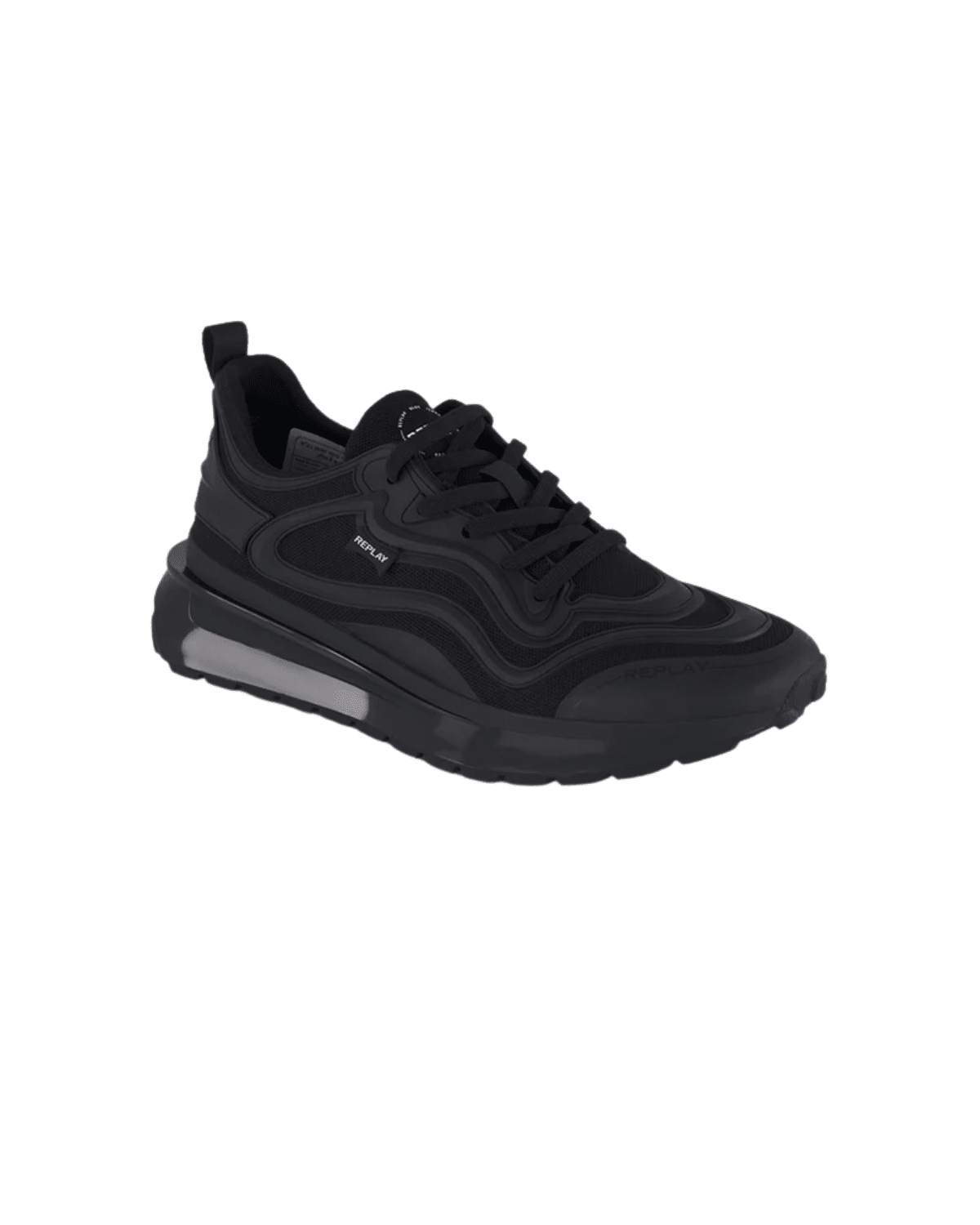 נעל סניקרס בגוון שחור עשיר, העשויה מחומרים איכותיים כגון עור חלק דמוי עור ולשונית רשת נושמת.