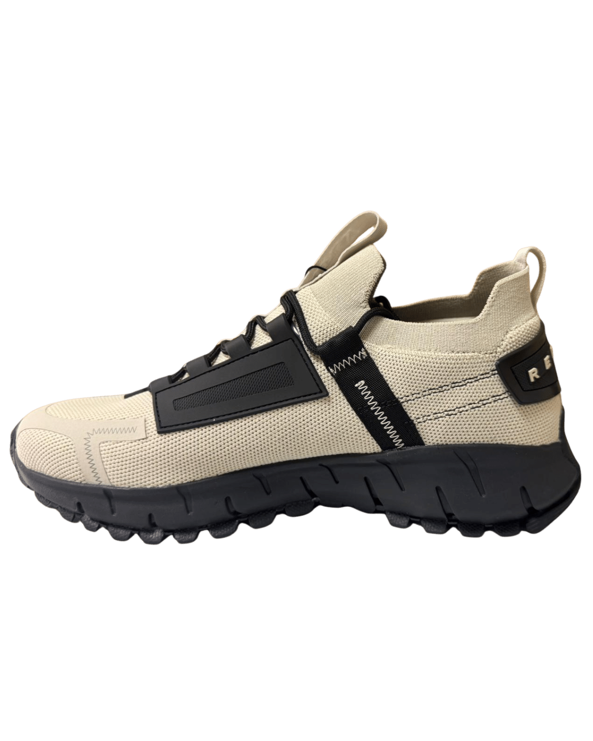 נעל סניקרס לגברים בעיצוב אורבני דינמי בצבע בז' עם סוליה שחורה בולטת, המשלבת בין סגנון מודרני לנוחות גבוהה.