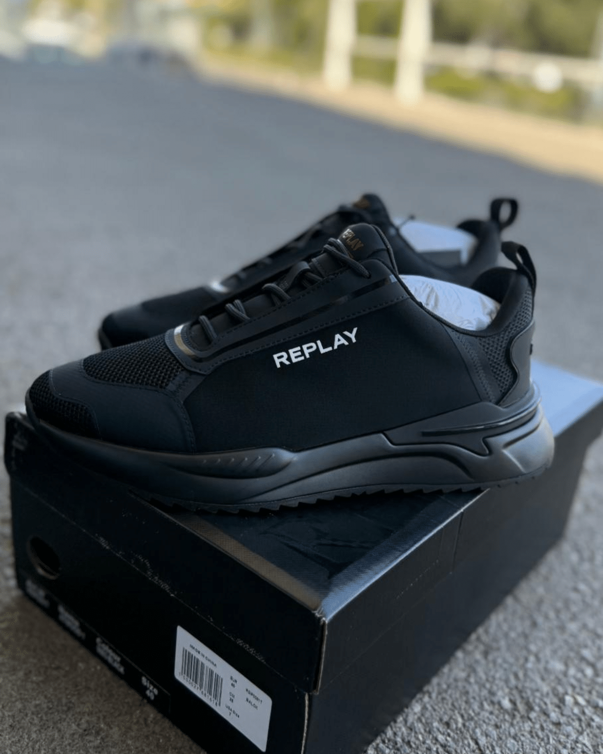 הלוגו REPLAY בולט בלבן בצד החיצוני של כל נעל ומוסיף טאץ' מובהק של מיתוג.