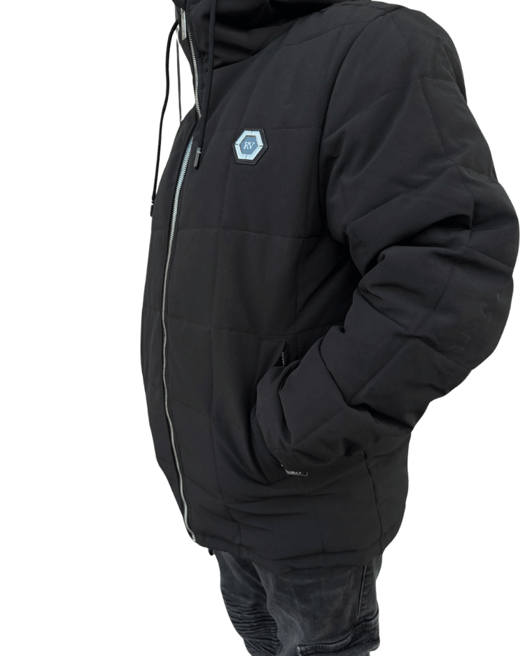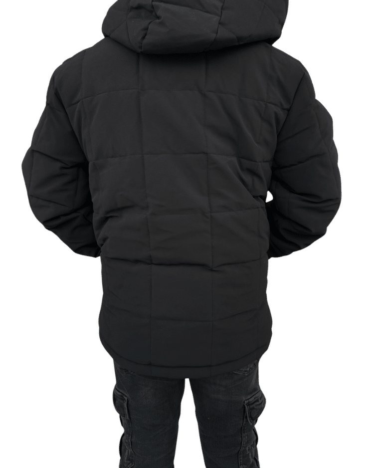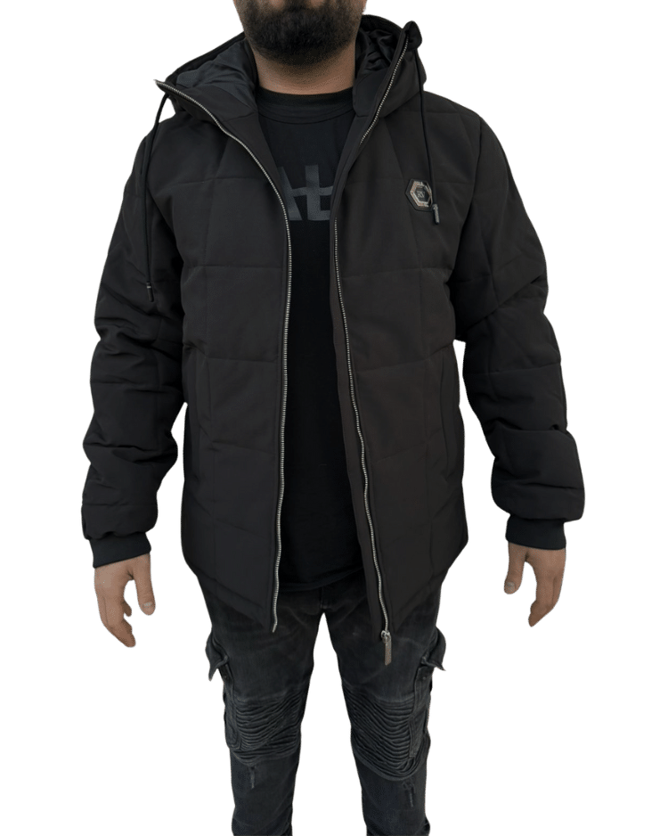 מעיל פוך מעויינים עם רוכסן לוגו המותג ברזל מקדימה.