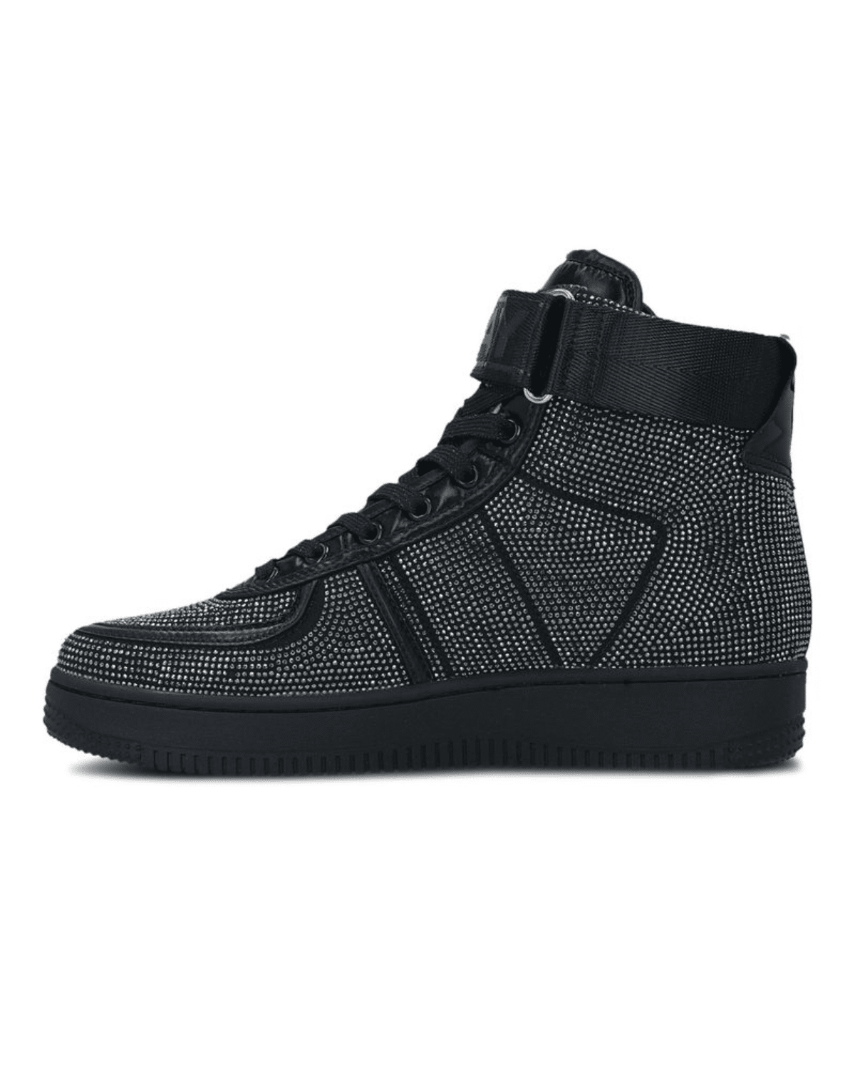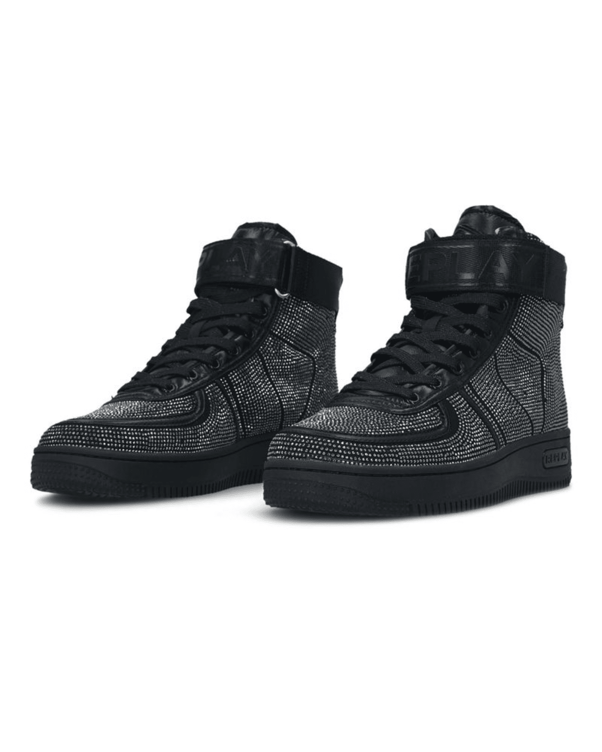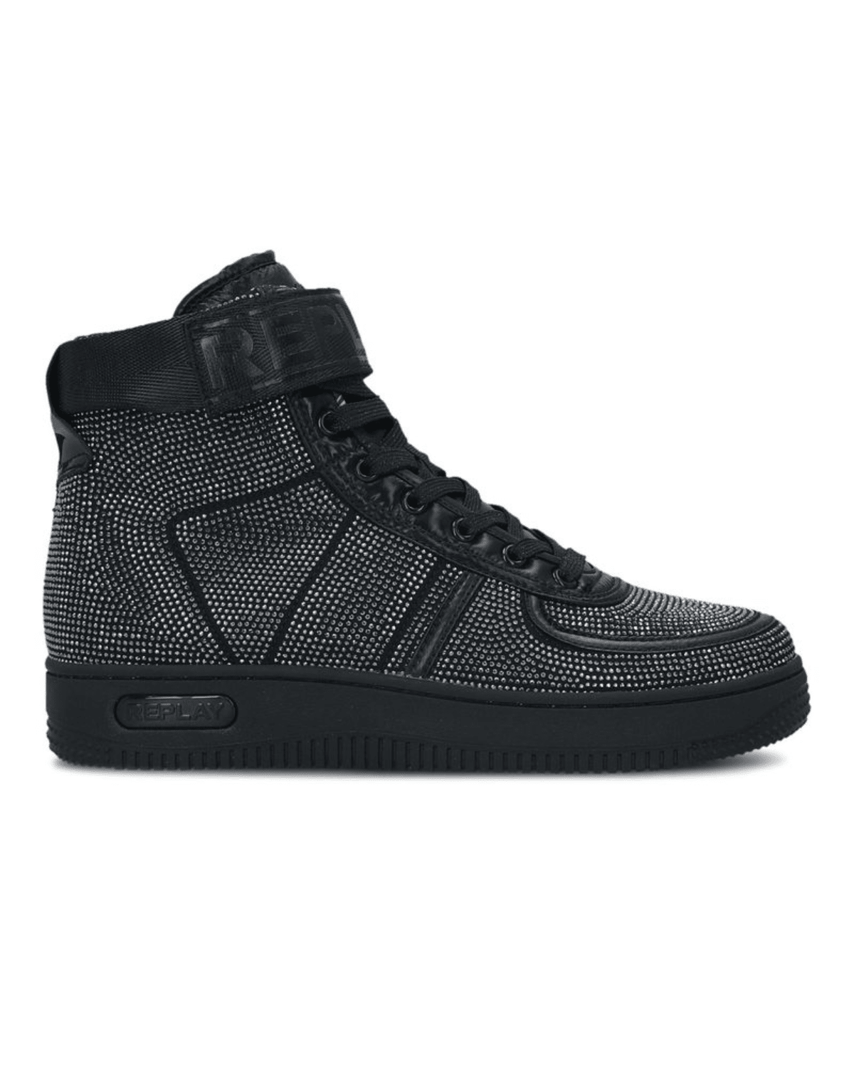 מגף בגזרה נמוכה בגוון שחור מלא המאובזר בפייטים לרחבי כל הנעל.