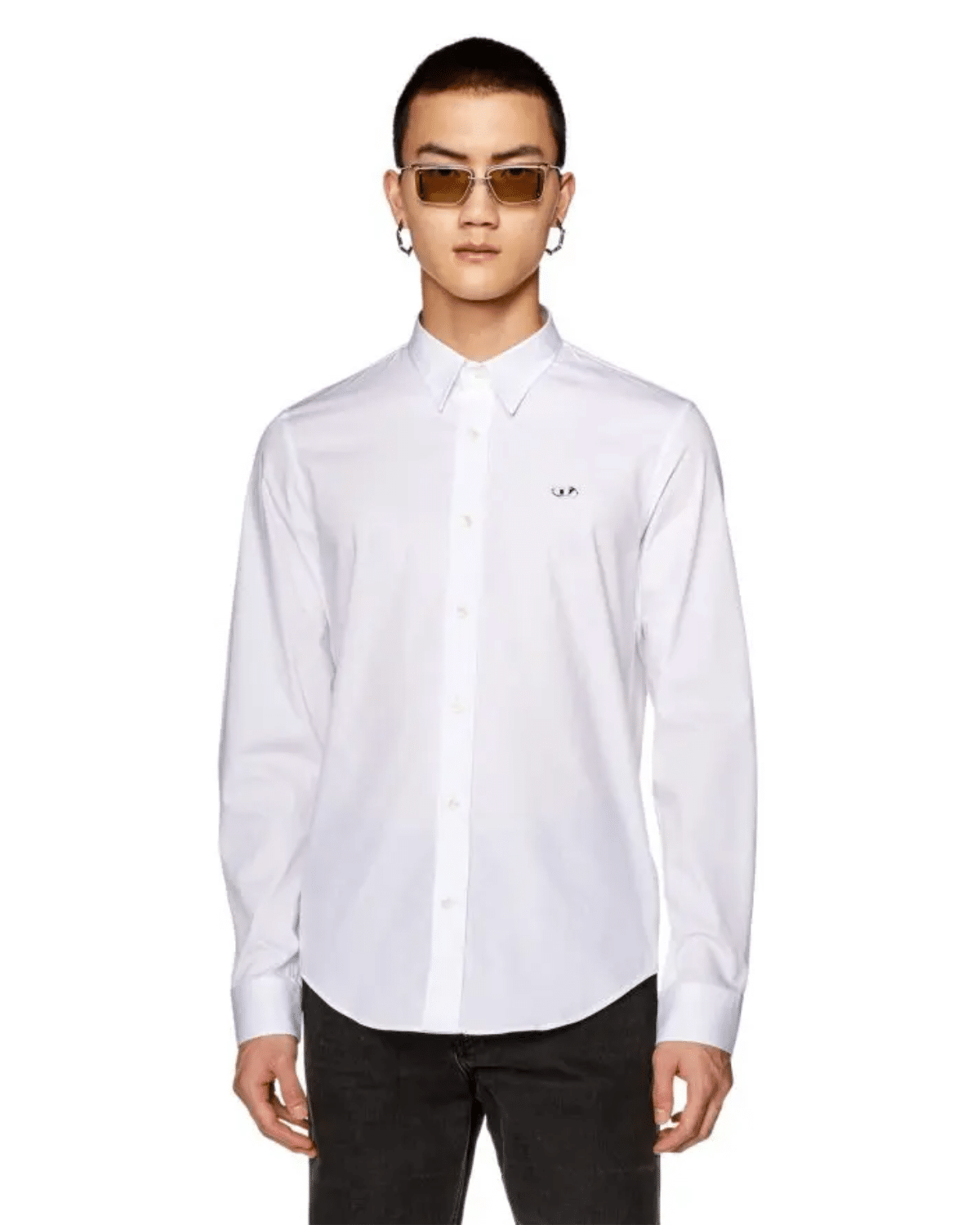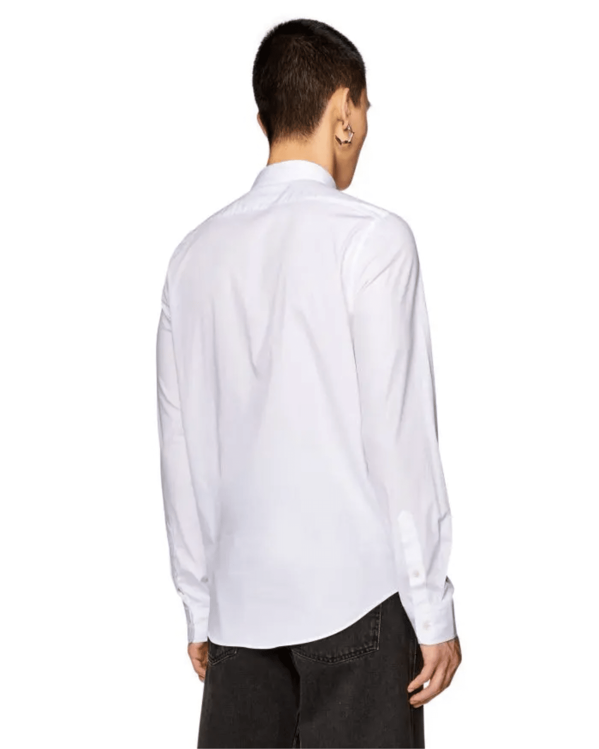 חולצת כותנה מכופתרת ארוכה בצבע לבן עם לוחית לוגו D קטנה ממתכת.