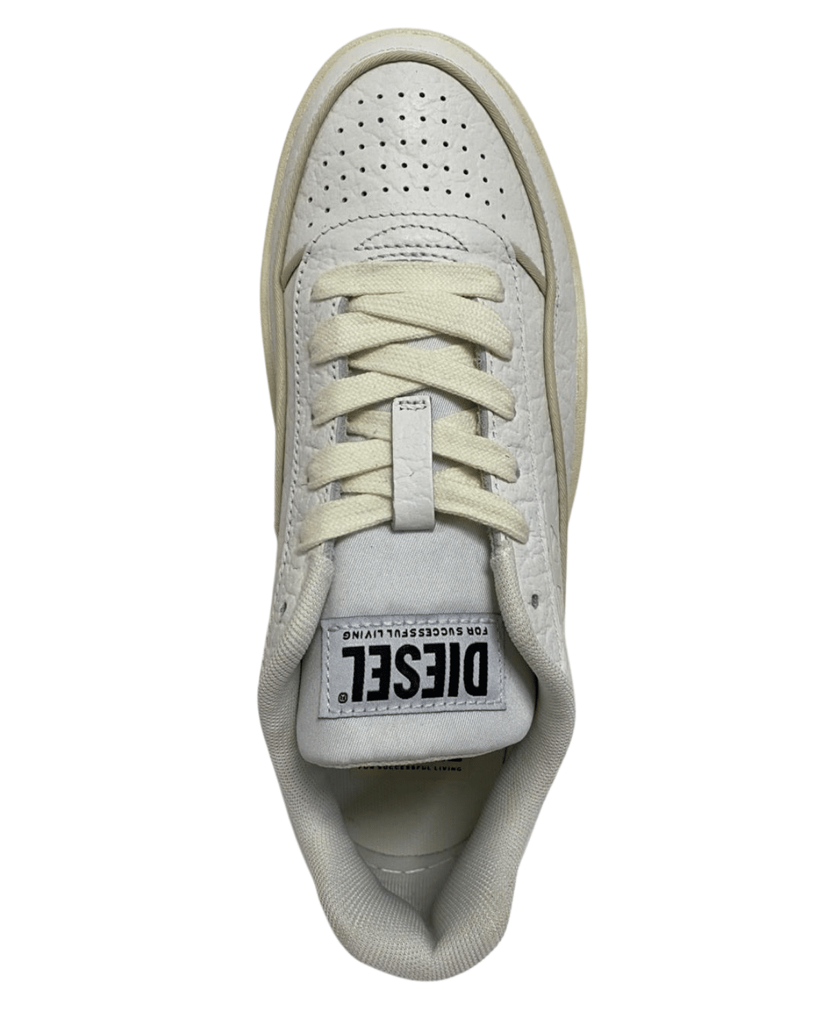 סניקרס לבנה נמוכה לגברים בעיצוב ייחודי מבית DIESEL, מדגם S‑TRACKER‑D LOW.