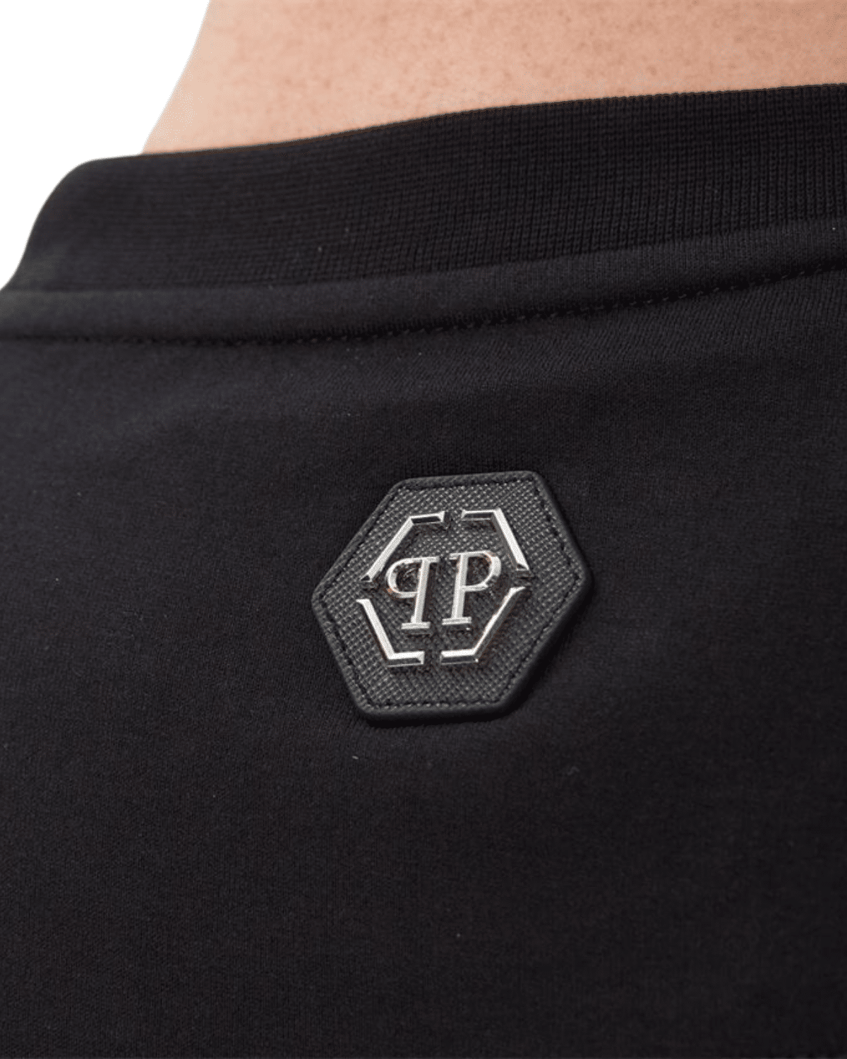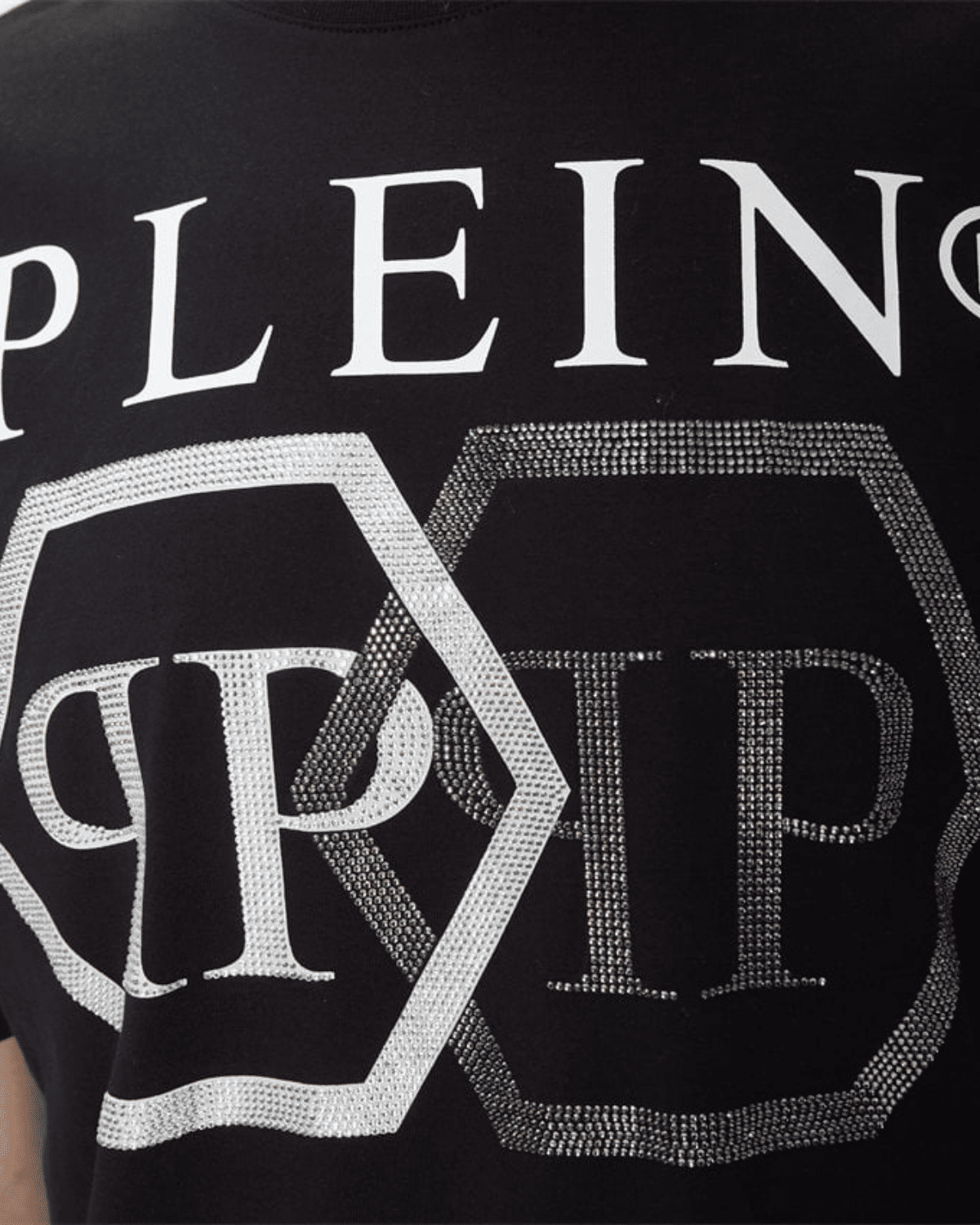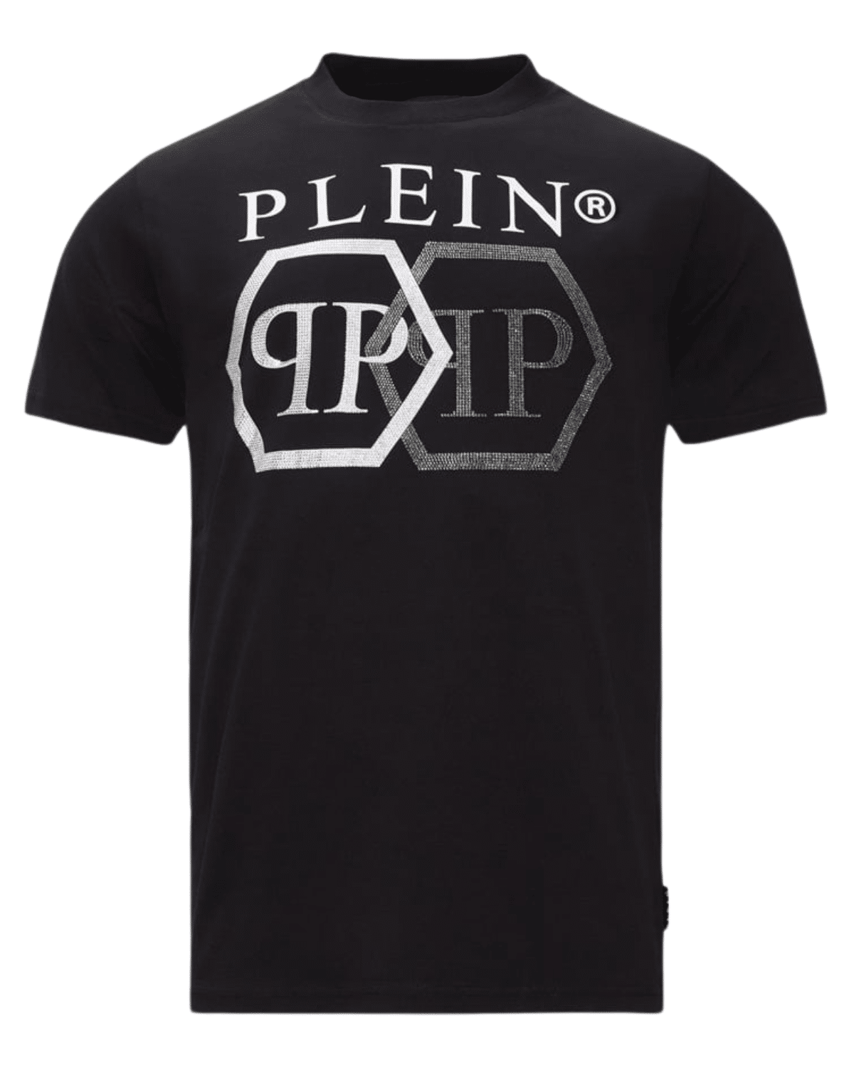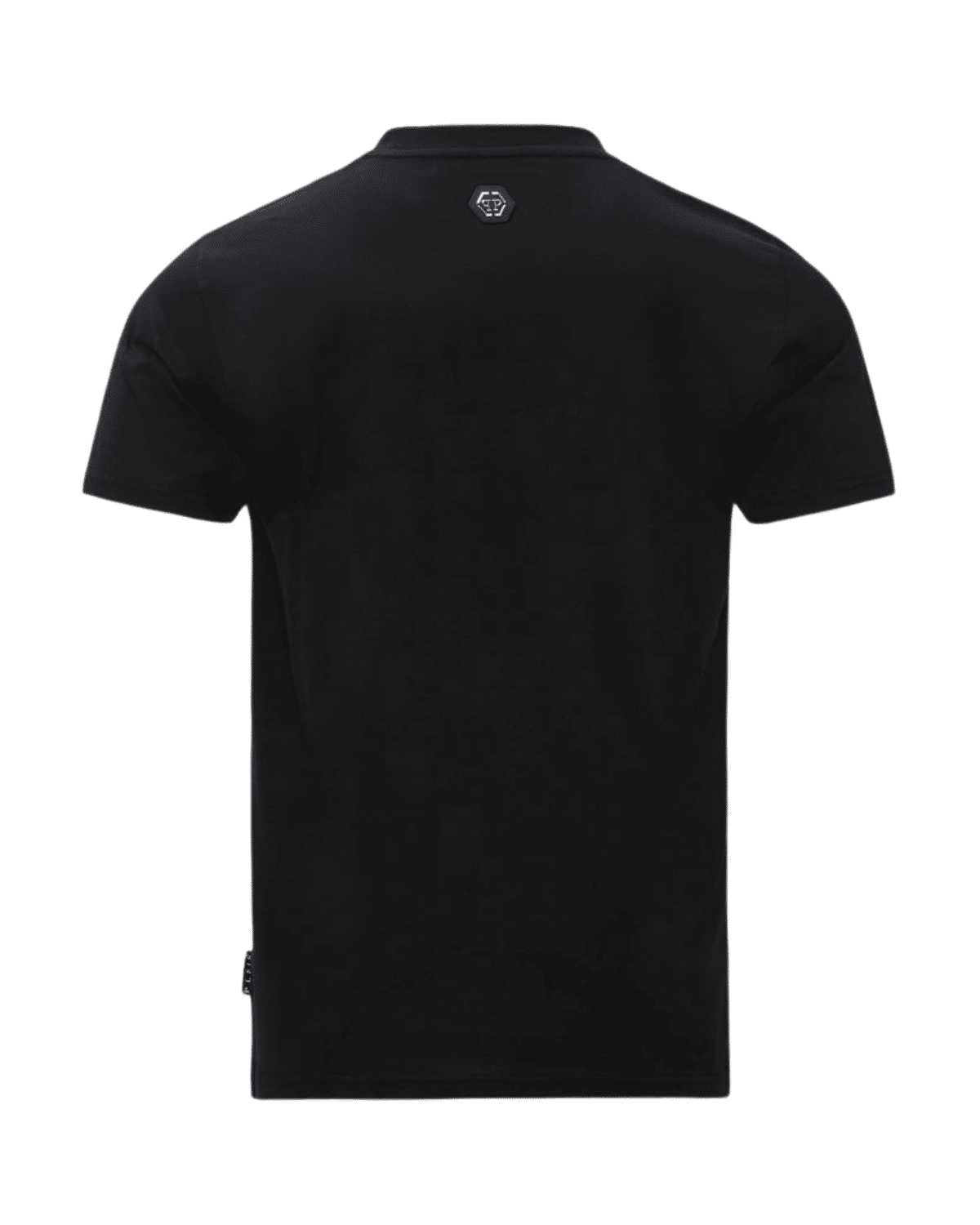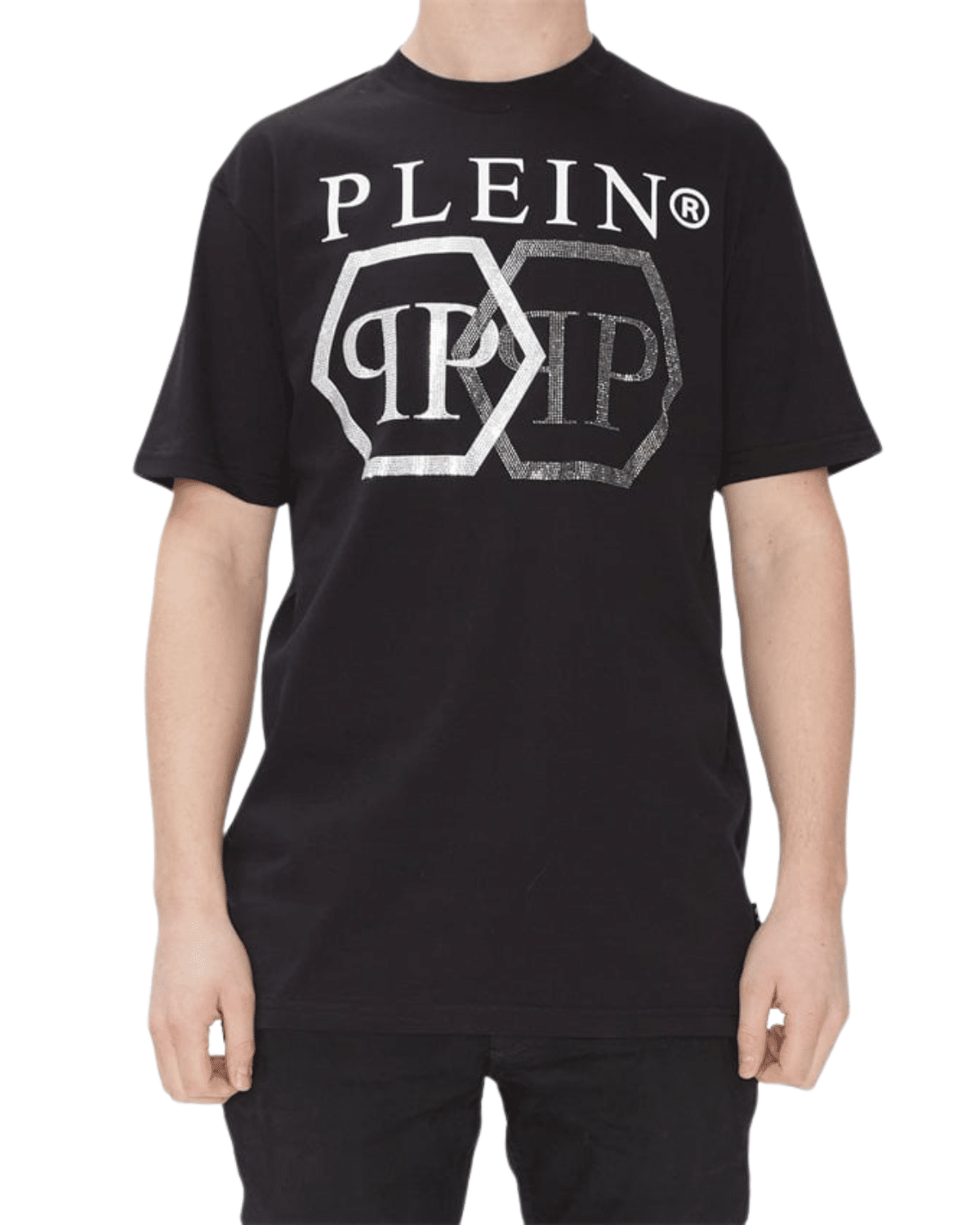 חולצת טי שחורה לגברים מבית PHILIPP PLEIN, המעוצבת בקו נועז ויוקרתי המזוהה עם המותג.