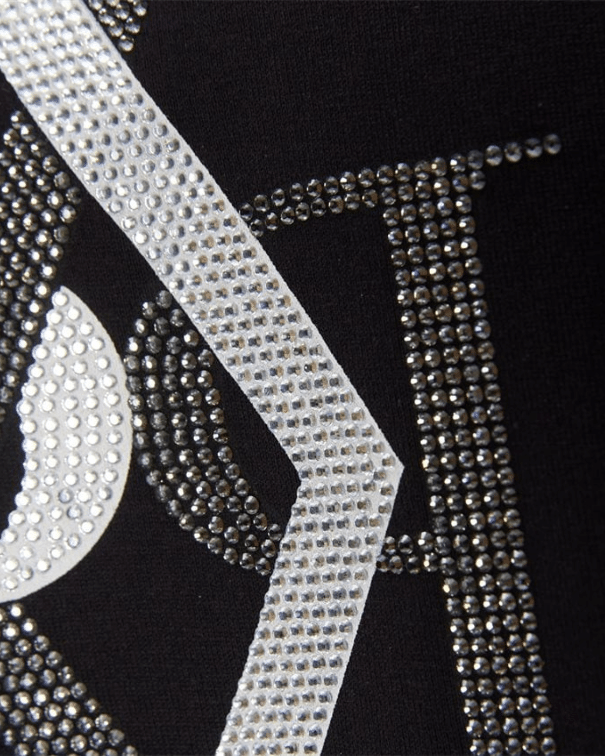 החולצה כוללת אלמנטים גרפיים מעוצבים באסתטיקה ייחודית – שילוב בין יוקרה אורבנית לבין אמירה אישית בועטת.