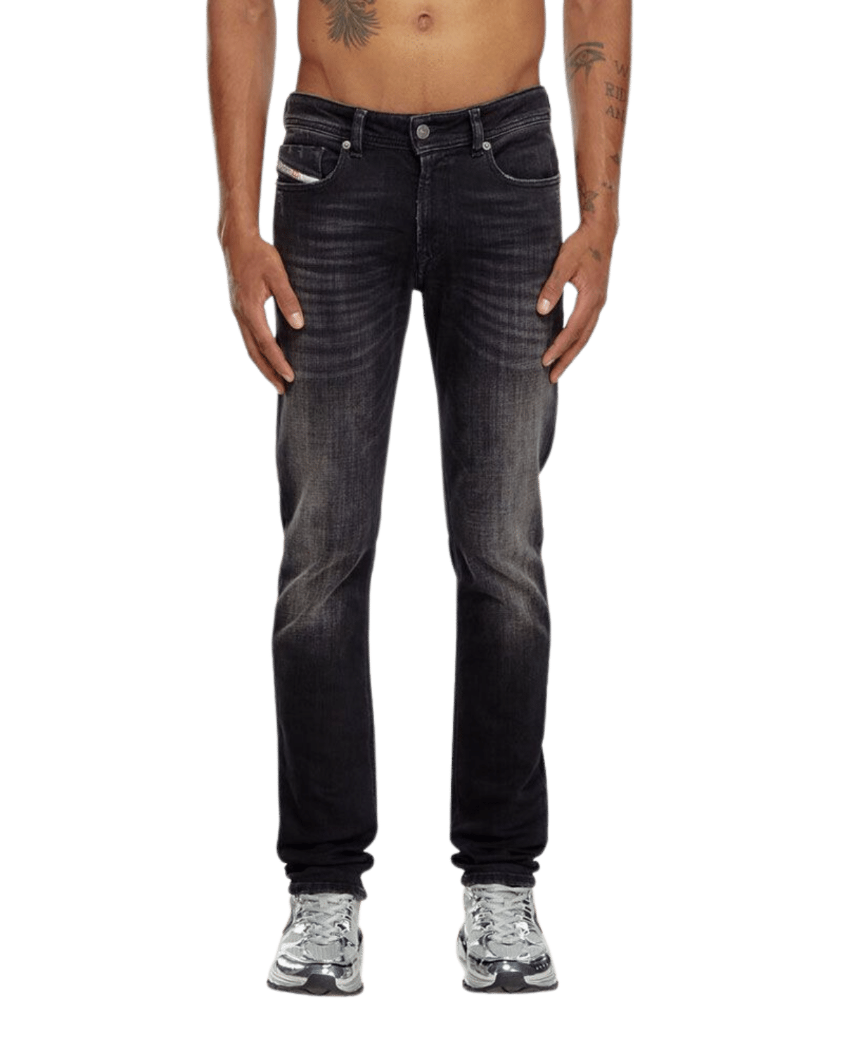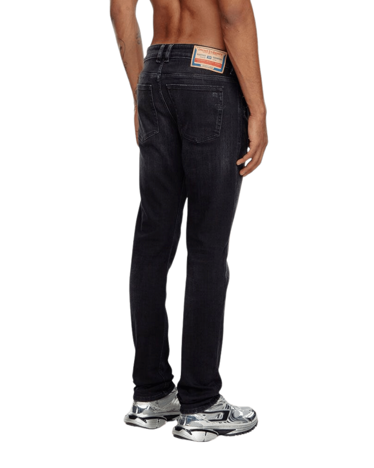 הג'ינס הנוחות מציג שטיפה שחורה שעברה טיפול עדין למראה משומש רך שאופייני לאסתטיקת ה-DNA של דיזל.
