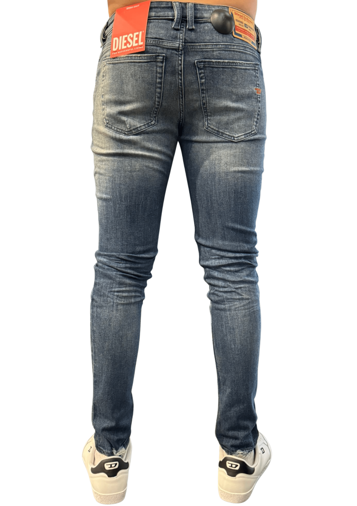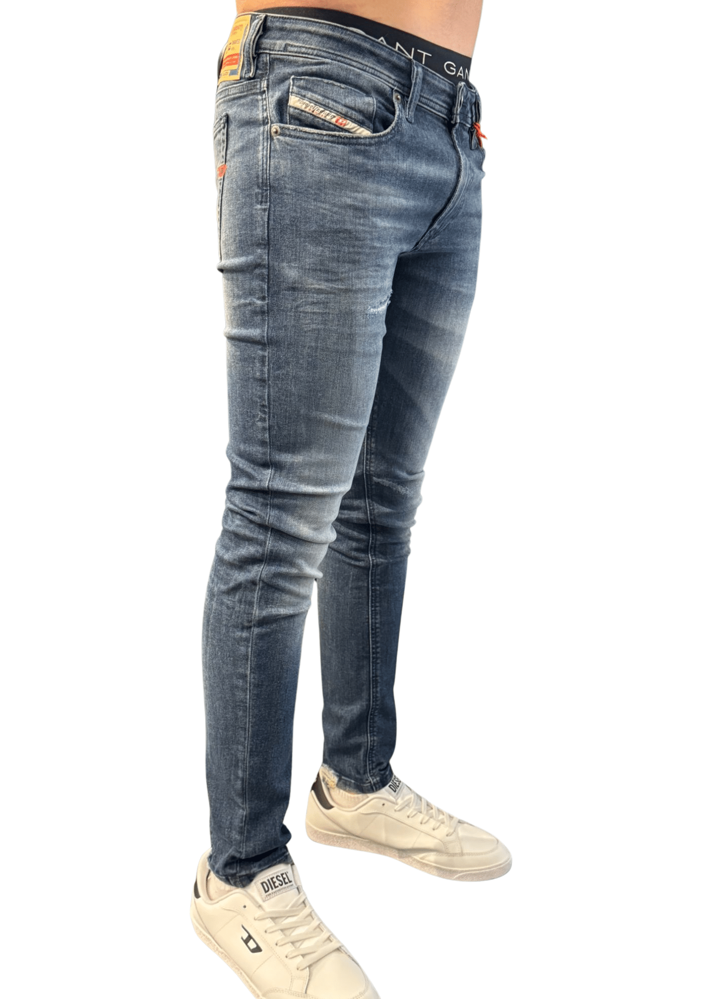 הבד גמיש ונוח ליום-יום, והעיצוב כולל פרטי גימור טיפוסיים של Diesel עם סקיני שמתאים לסגנון עירוני וצעיר.