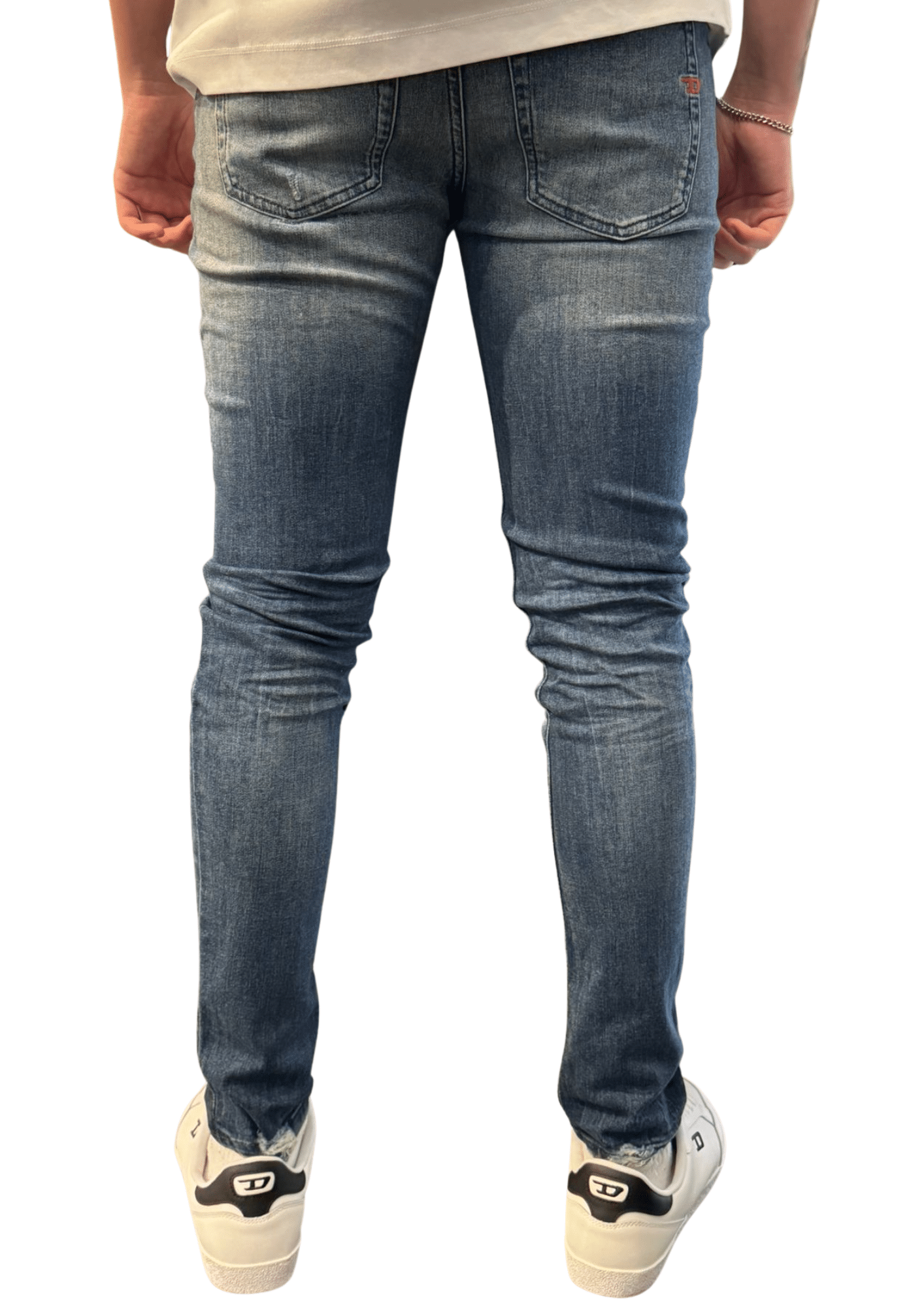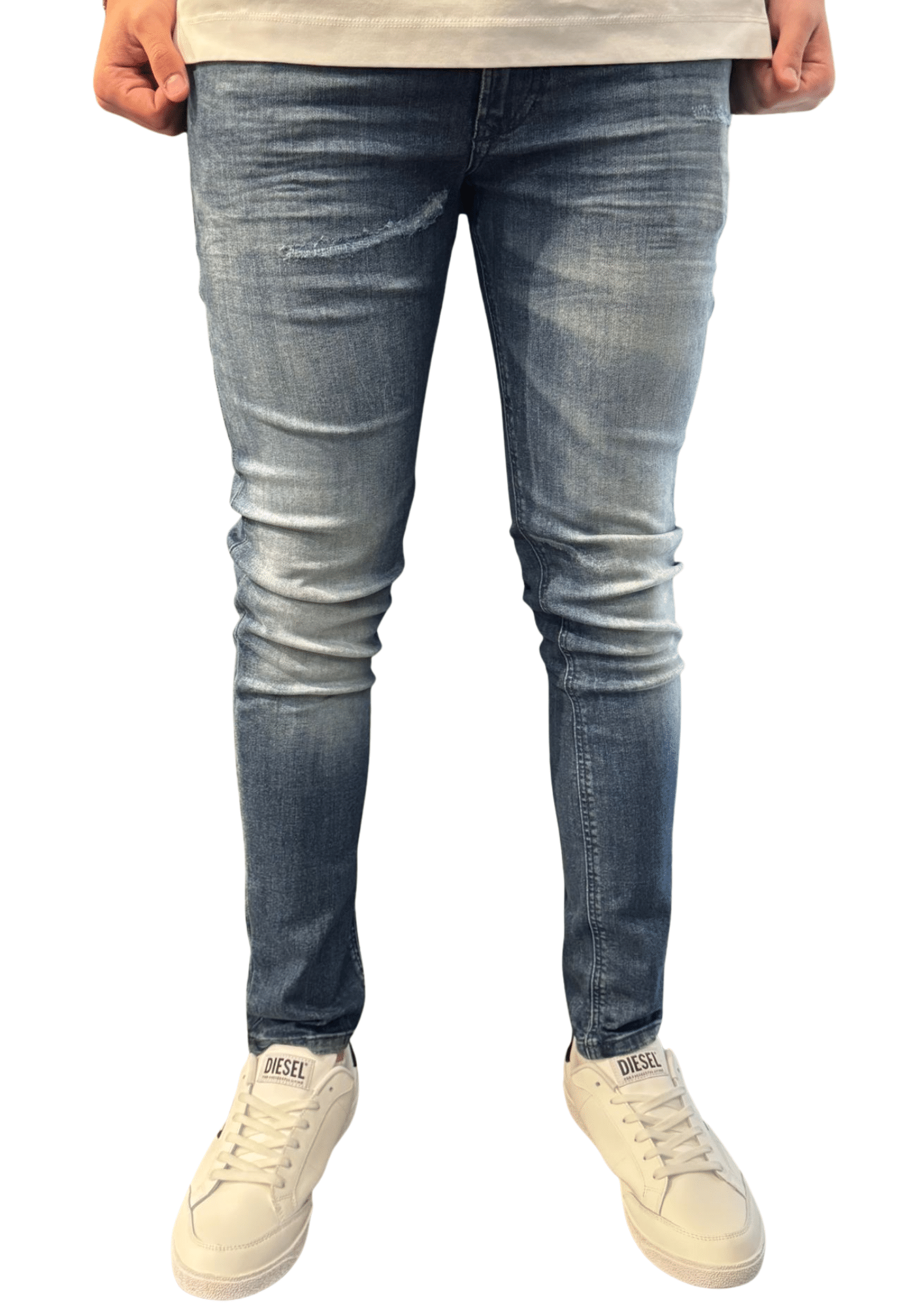 ג’ינס גברי מבית Diesel מדגם Sleenker בצבע כחול, המשלב בין סגנון רחוב מודרני לקלאסיקה של ג’ינס.