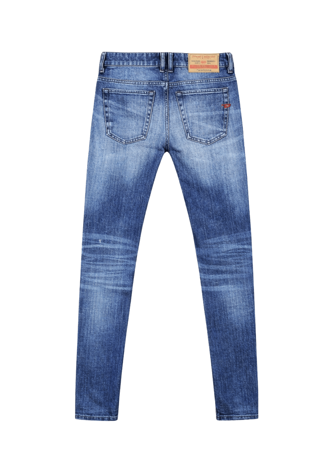 הדגם כולל שטיפה כחולה עם אפקטים של שחיקה ושפשופים עדינים למראה אורבני מחוספס ועדכני.