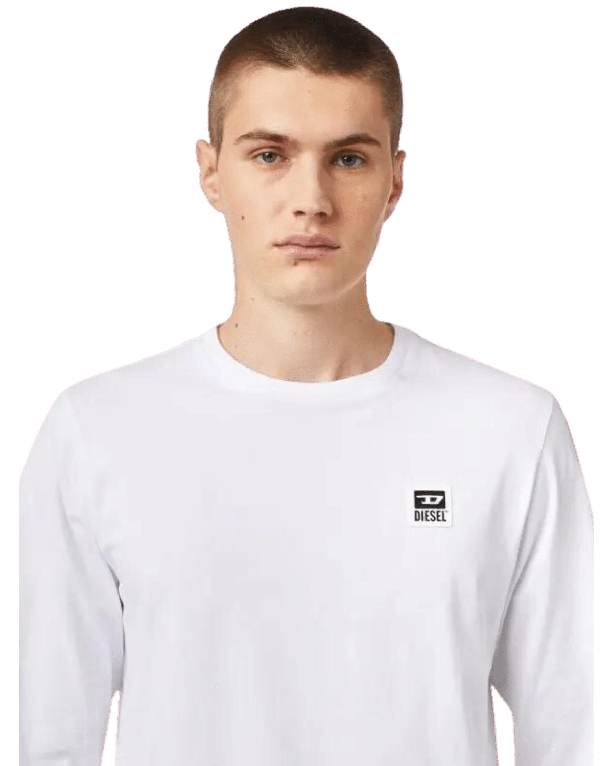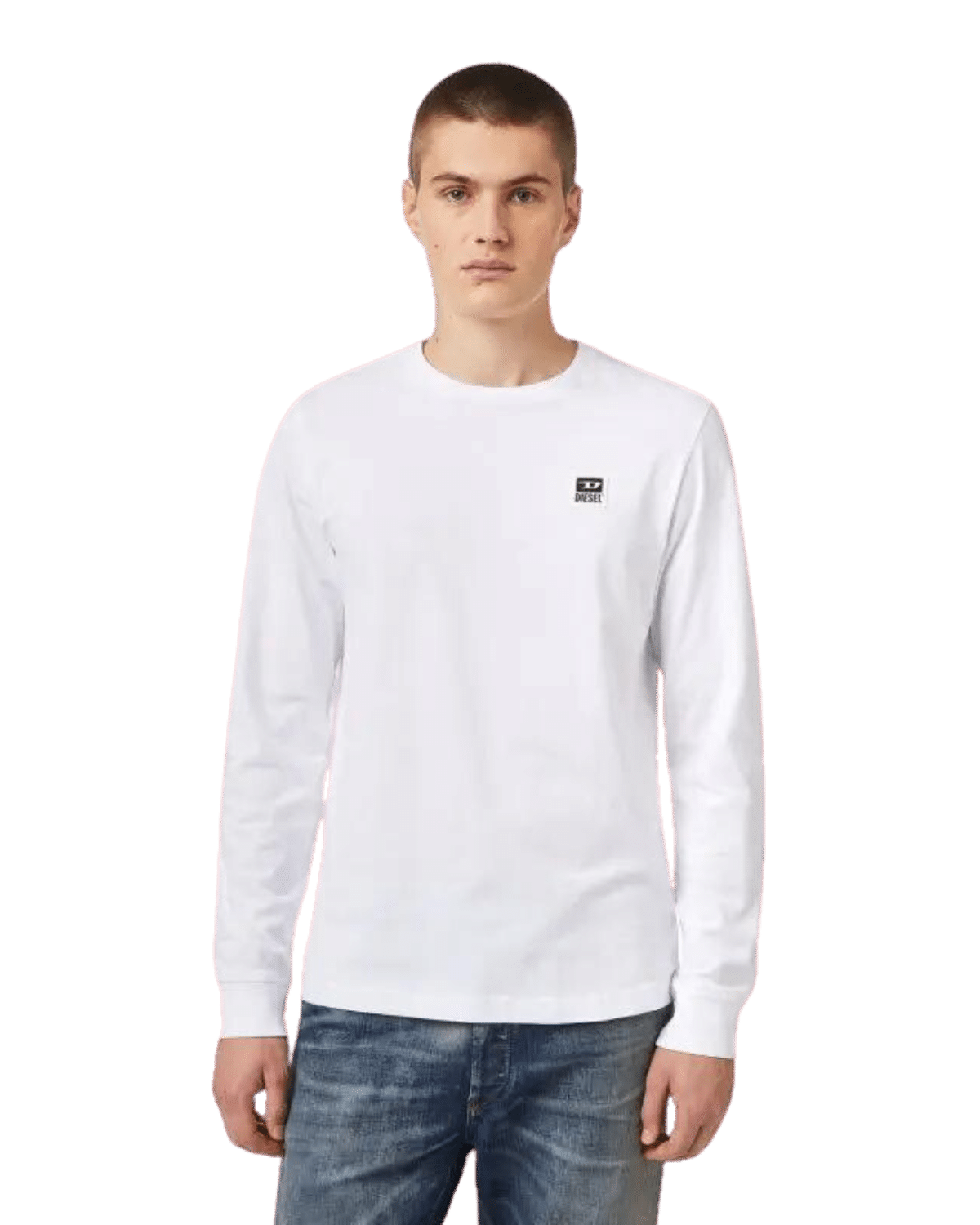 חולצת טי עם שרוולים ארוכים בצבע שחור ולוגו דיזל מרובע לבן קטן בצד החזה.
