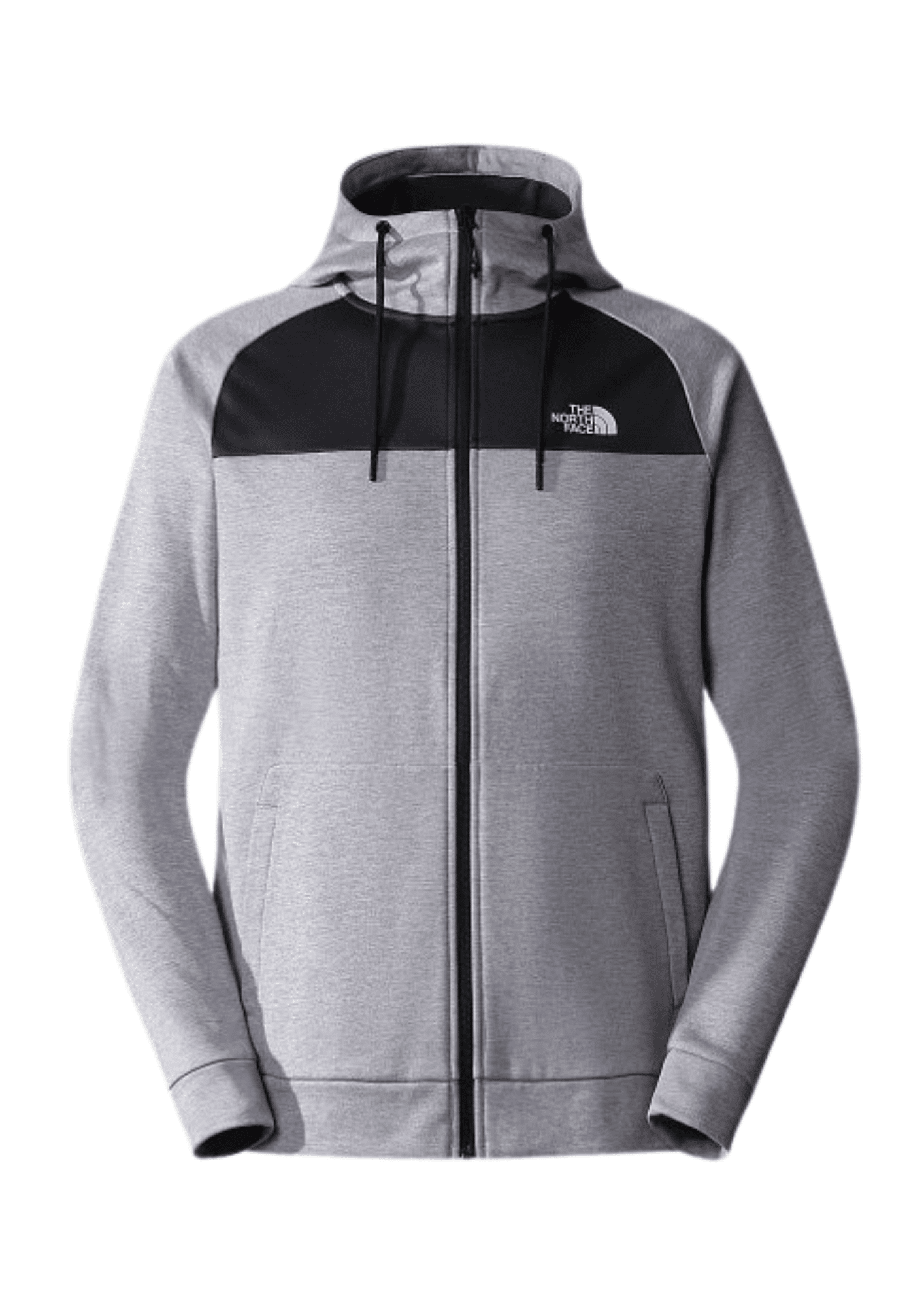 קפוצ’ון-פליס לגברים מבית The North Face בדגם Reaxion Full-Zip, בגוון טון בהיר-אפור עם רוכסן מלא קדמי.