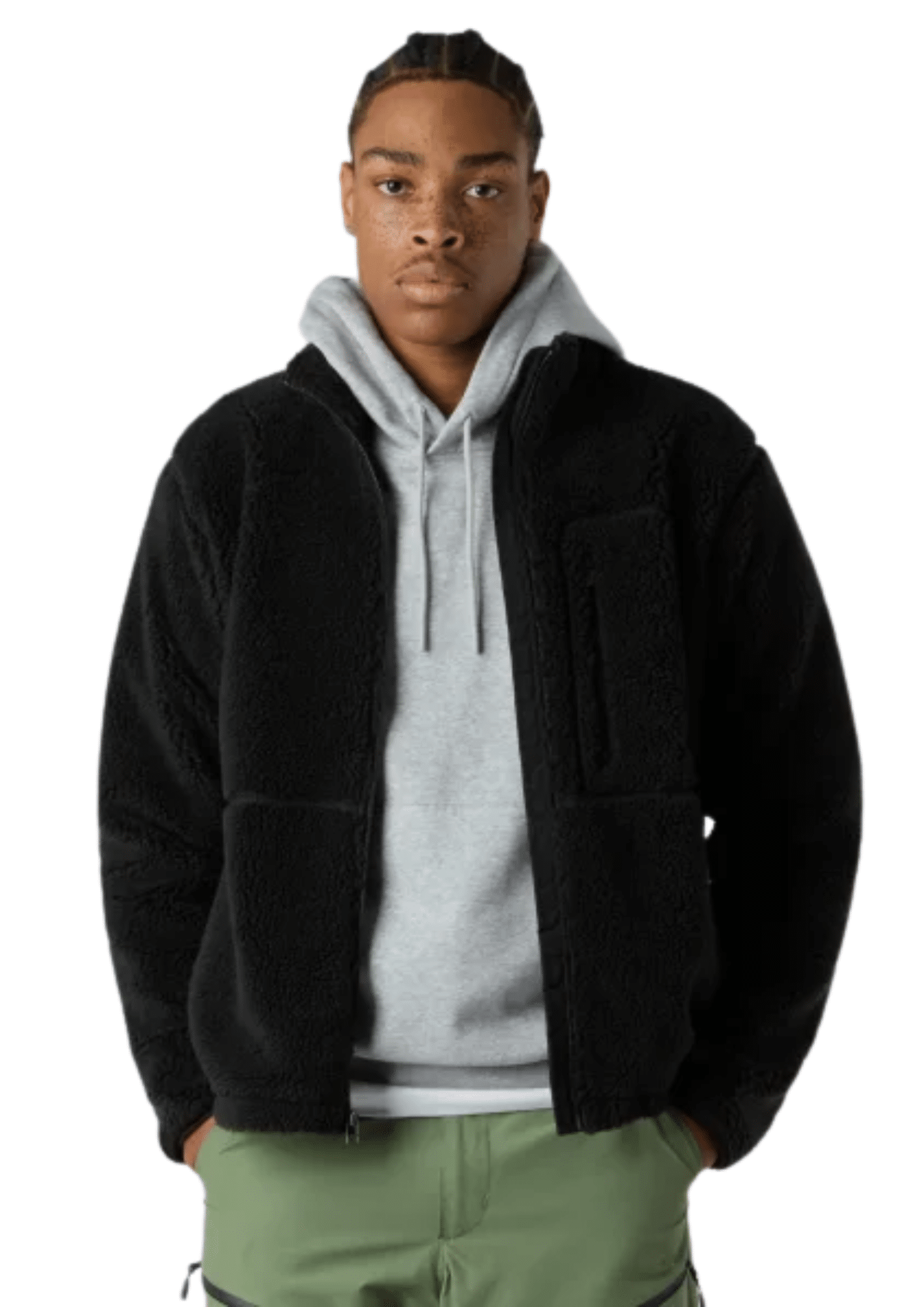 המעיל כולל סגירת רוכסן מלאה מקדימה (Full-Zip), צווארון גבוה להגנה מפני הרוח, וכיסי יד קדמיים עם רוכסן לאחסון בטוח של חפצים.