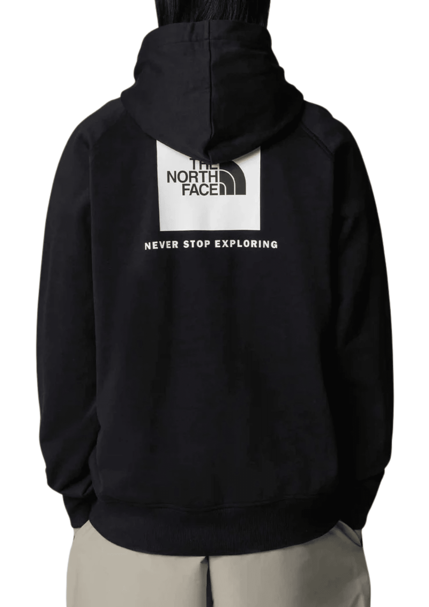 הפריט כולל קפוצ’ון דו-חלקי, שרוולי רגלן (Raglan) ולוגו-BOX גדול בגב לצד הדפס לוגו קטן בחזה.