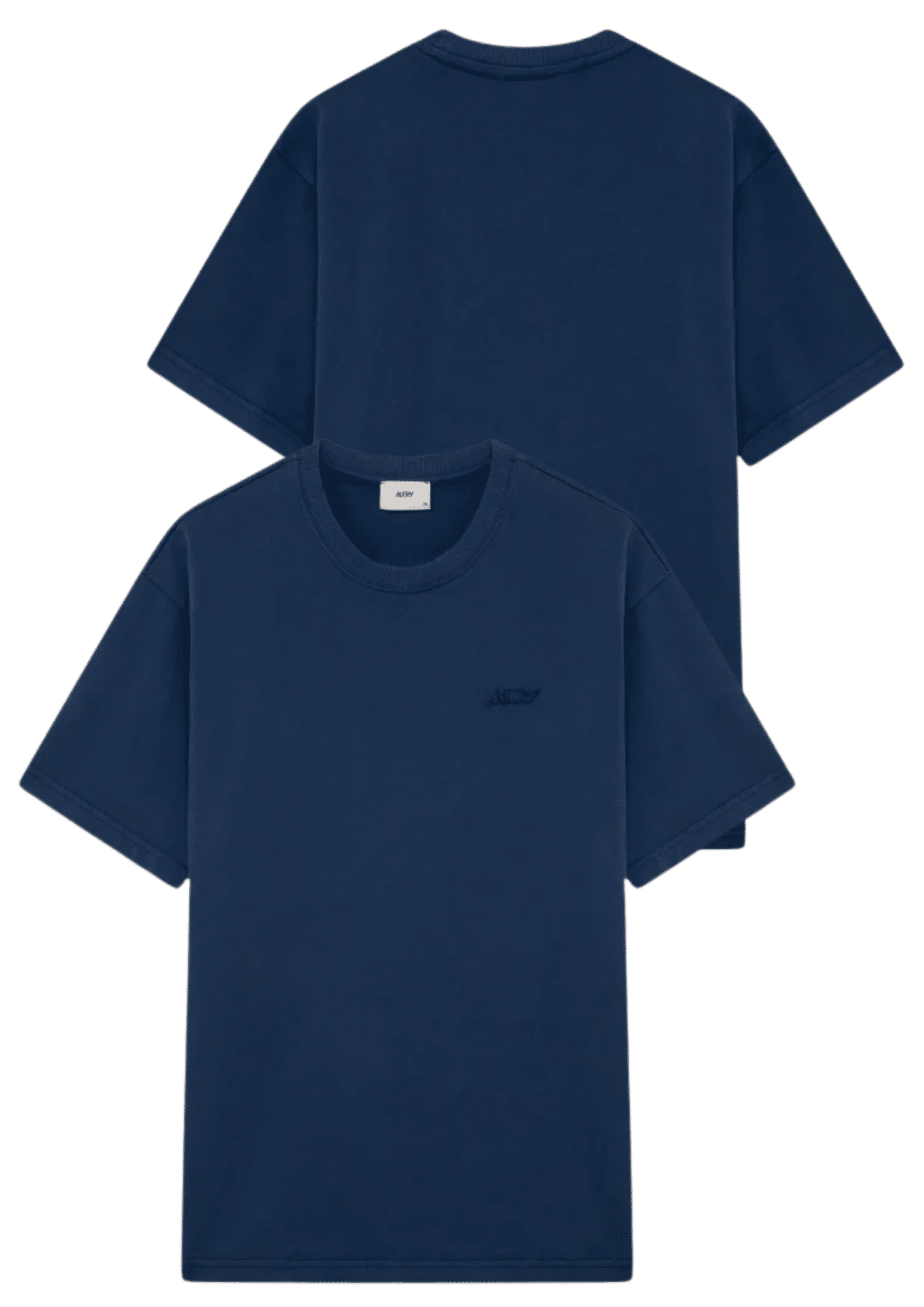 טי-שירט לגברים מבית AUTRY בעיצוב מינימליסטי בצבע כחול נייבי עמוק, עם לוגו קטן ועדין בחזית למראה נקי ומדויק.