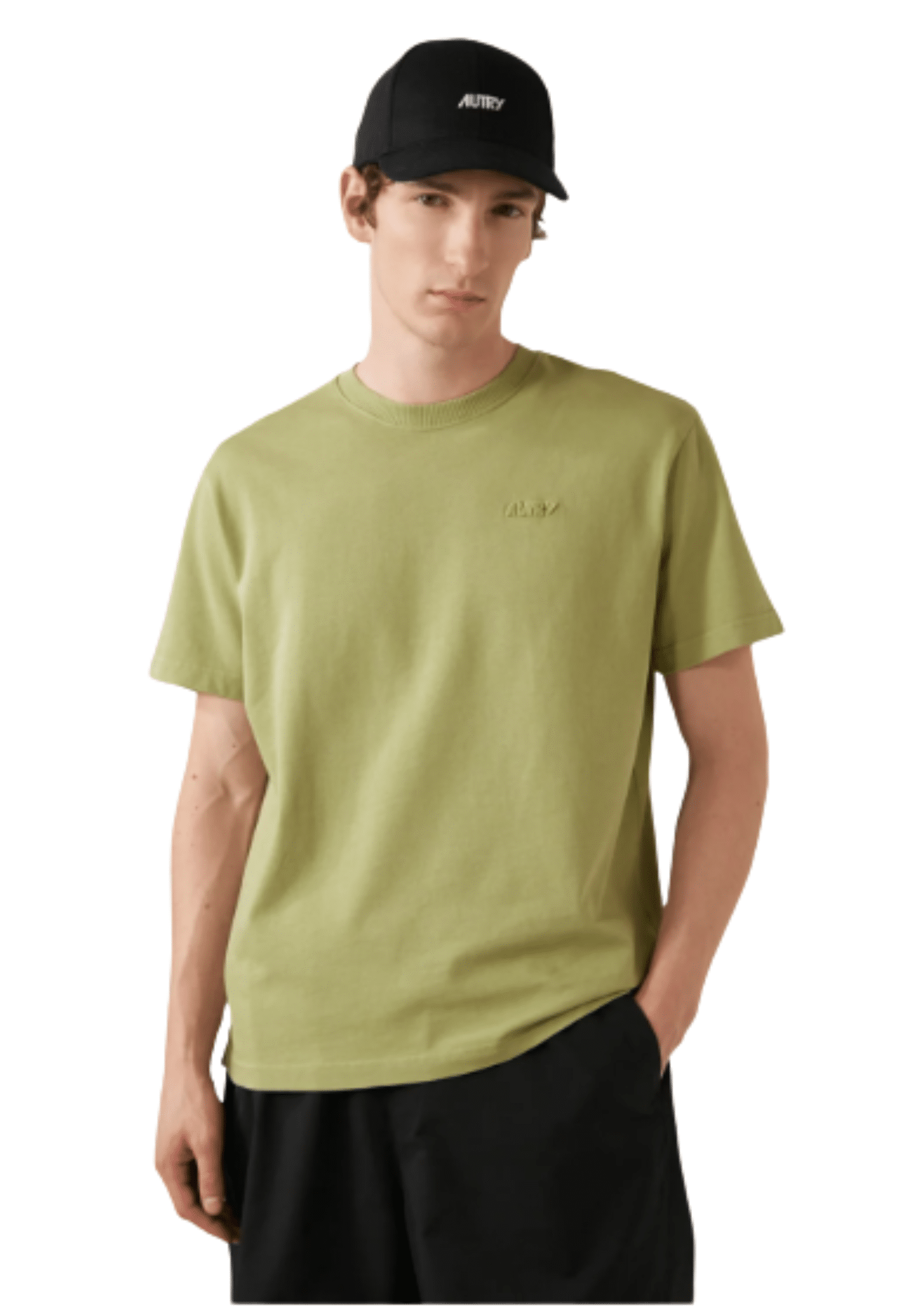 טי-שירט לגברים מבית AUTRY בעיצוב מינימליסטי בצבע ירוק, עם לוגו קטן ועדין בחזית למראה נקי ומדויק.