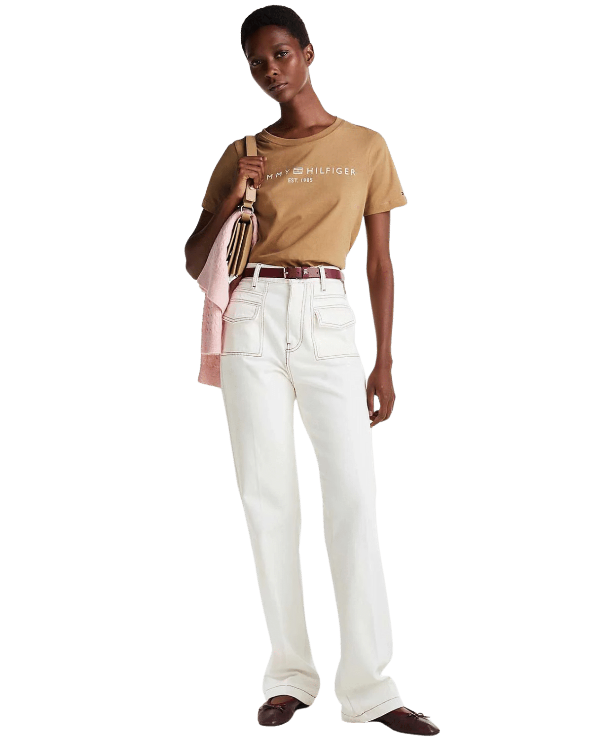 חולצת טי-שירט בצבע חום טבעי ונעים מבית טומי הילפיגר.
