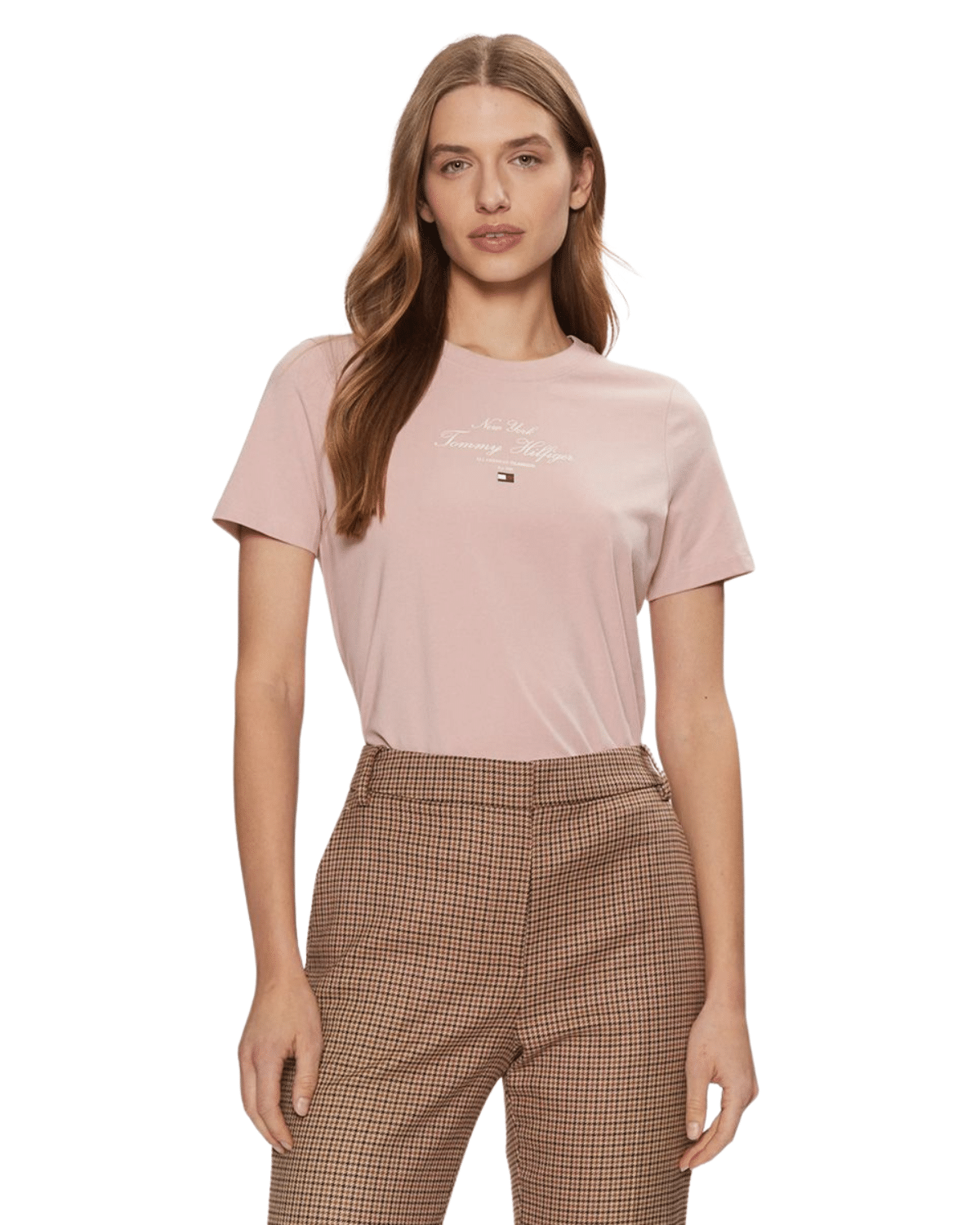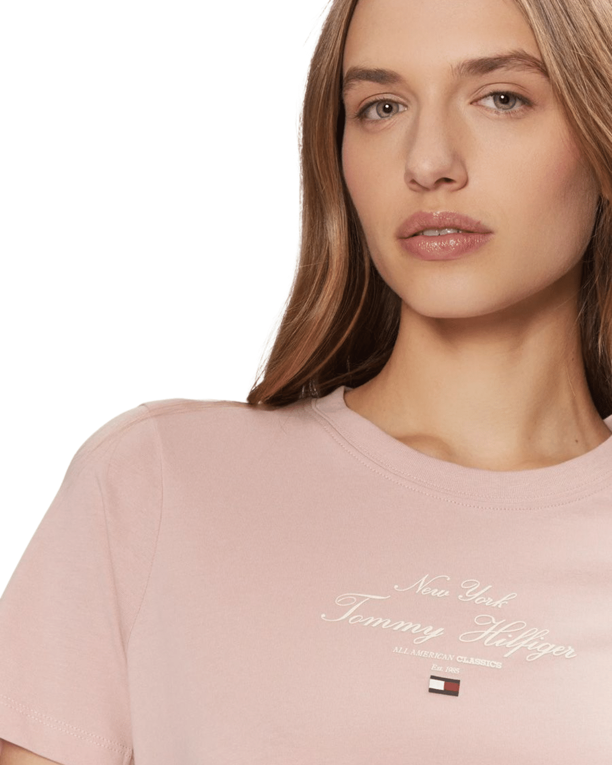 החולצה הקצרה לנשים בצבע וורוד של טומי הילפיגר היא פריט יומיומי שמספק נוחות לצד מראה קלאסי עם נגיעה של אופנה מודרנית.