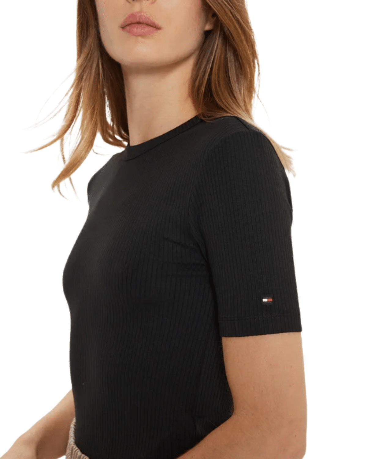 חולצה קצרה לנשים בצבע שחור בעיצוב קלאסי ונקי מבית טומי הילפינגר