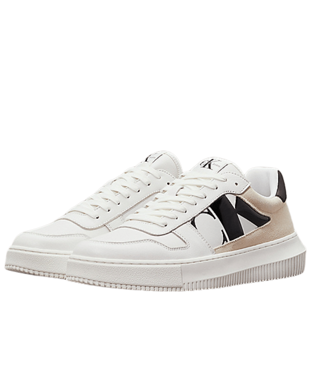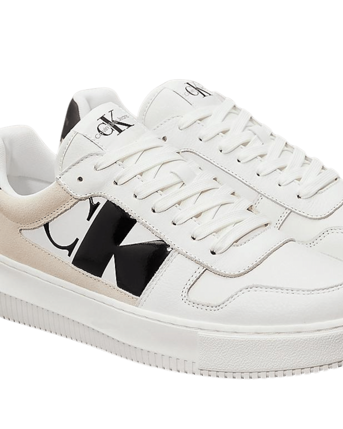 סניקרס קלווין קליין מעור עשויות עור וחומרי טקסטיל עם בטנת רשת פוליאסטר,