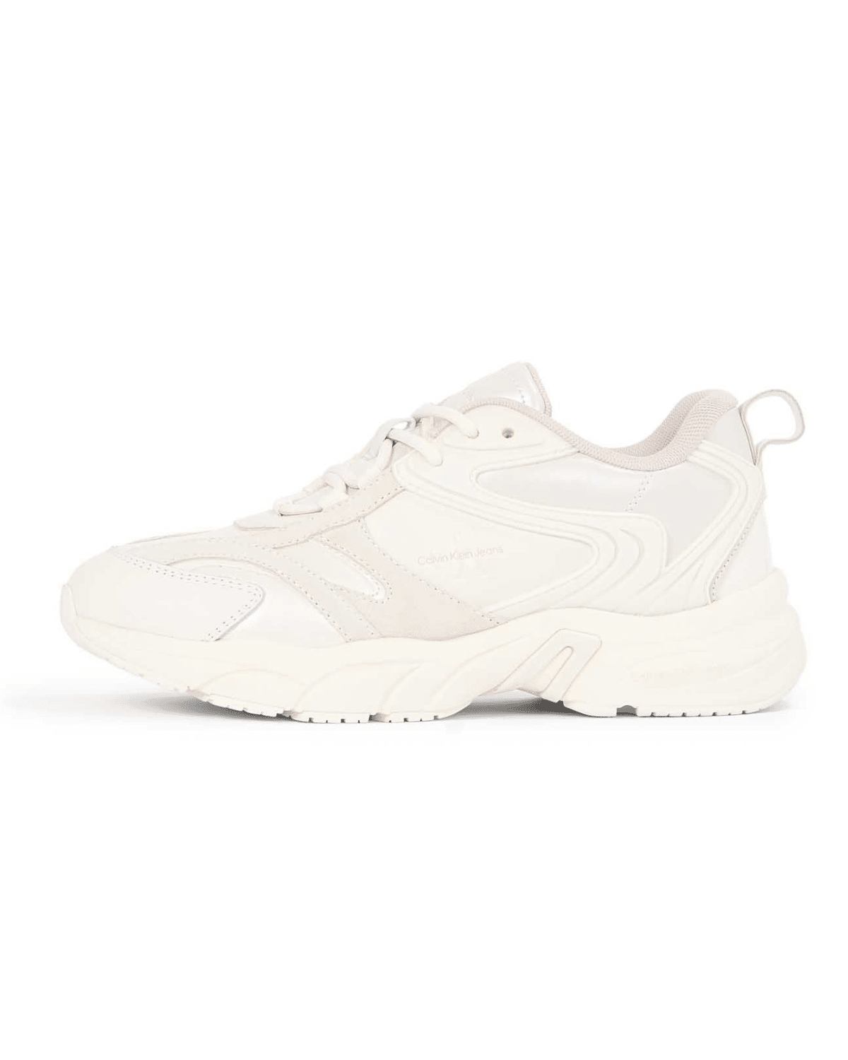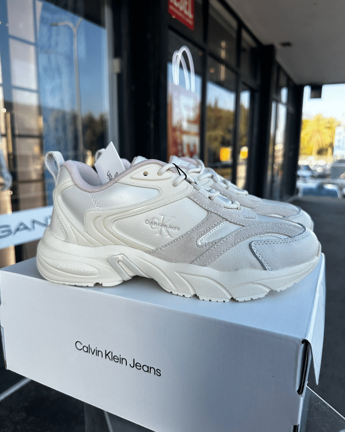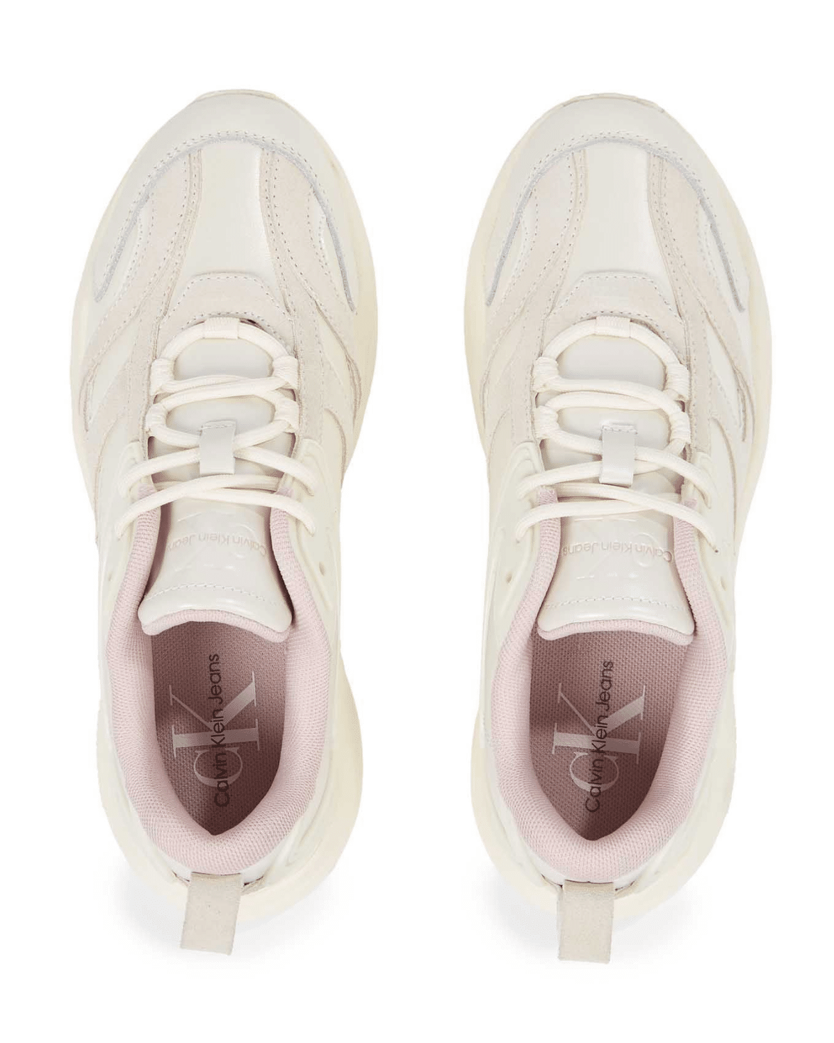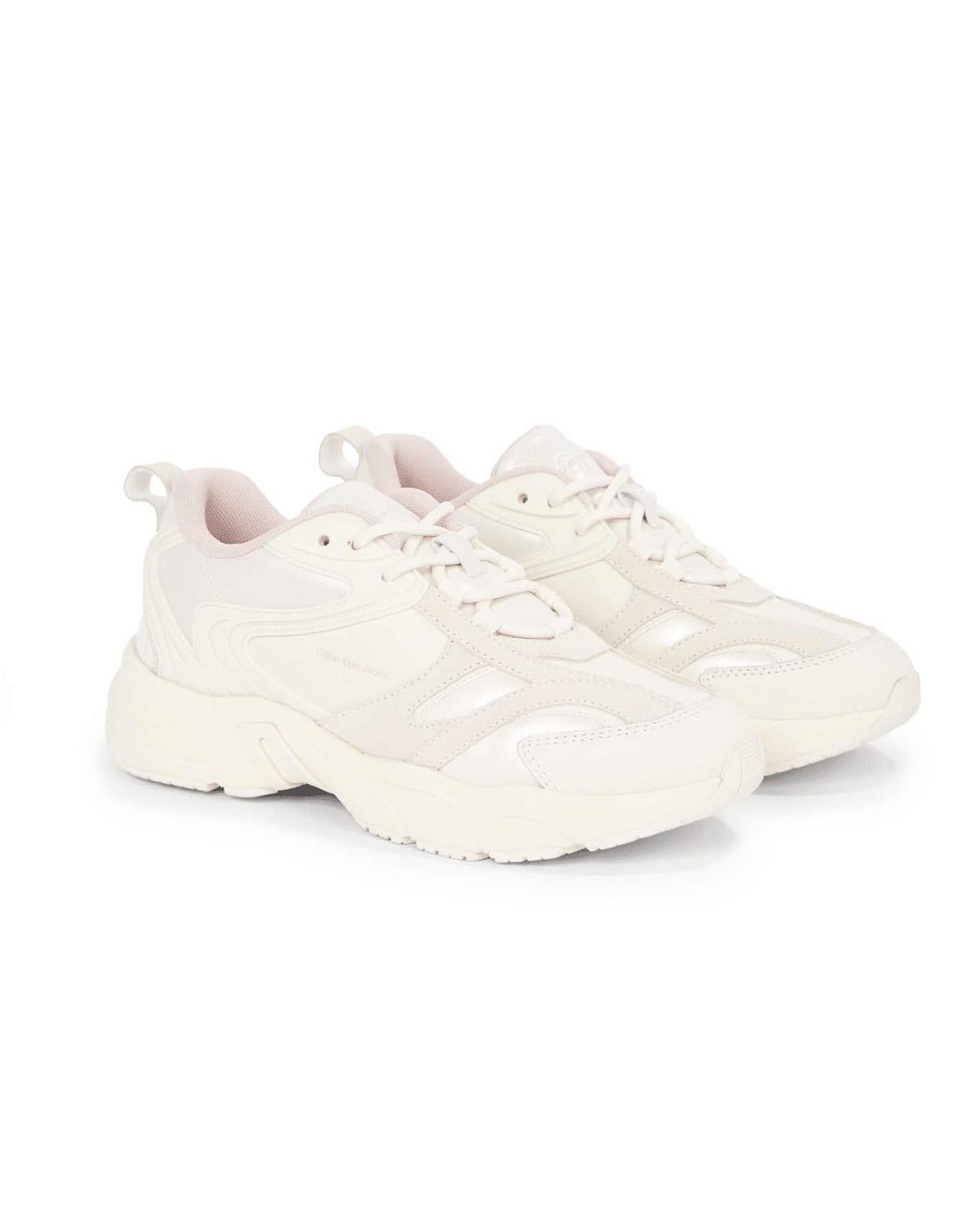 נעלי ספורט לנשים בצבע לבן- וורוד של קלווין קליין ג'ינס בסגנון רטרו, הן השילוב המושלם של אלגנטיות ונוחות.